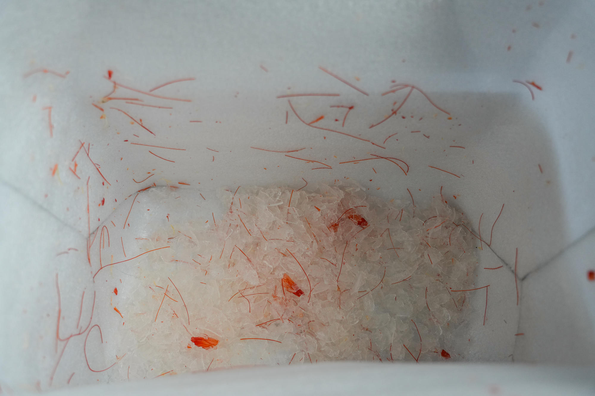 可以看到冰不多的,但是虾须容易断,会粘在袋子上,其实没有掉多少。