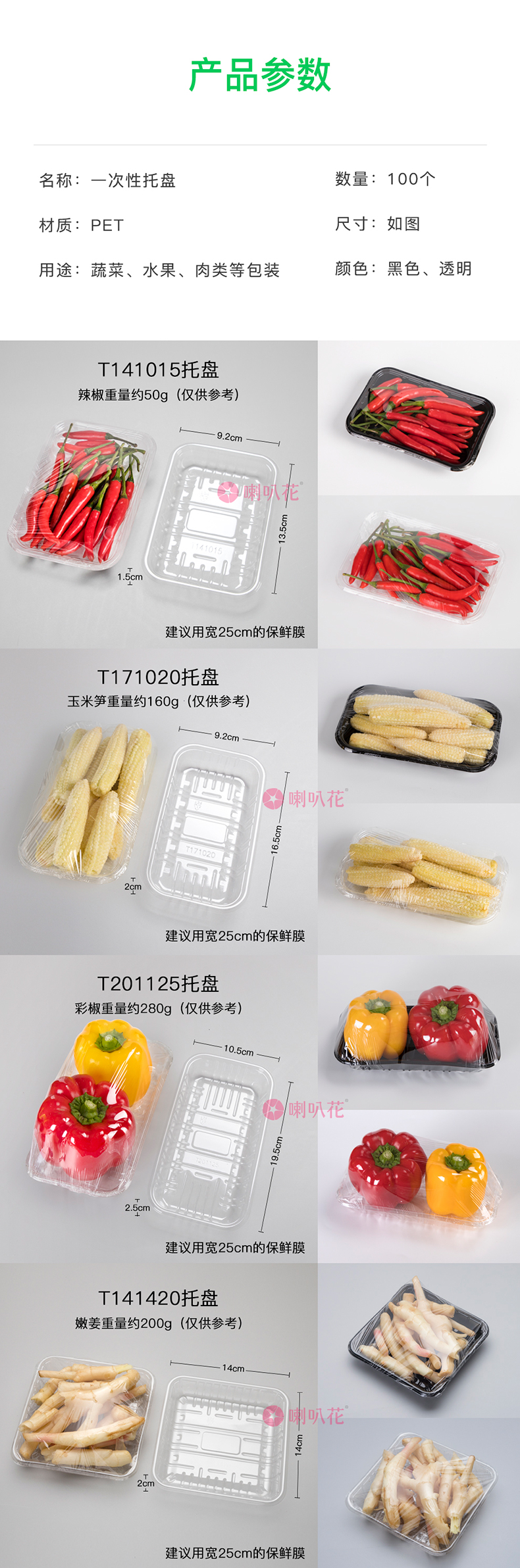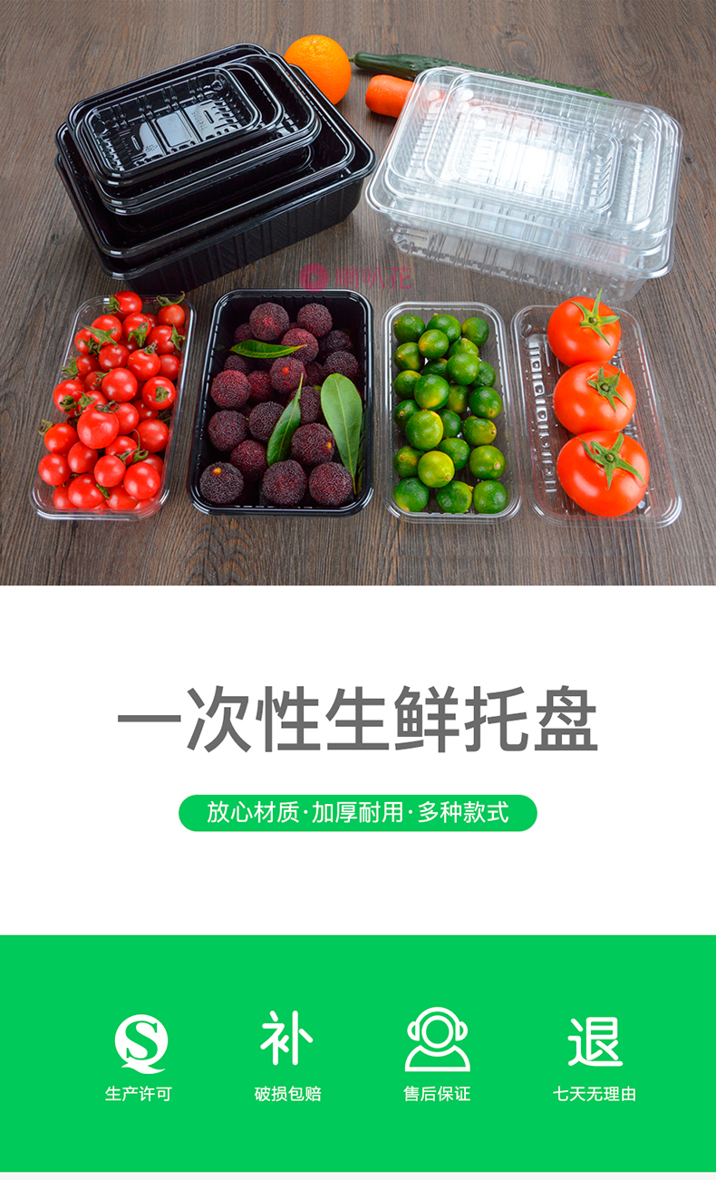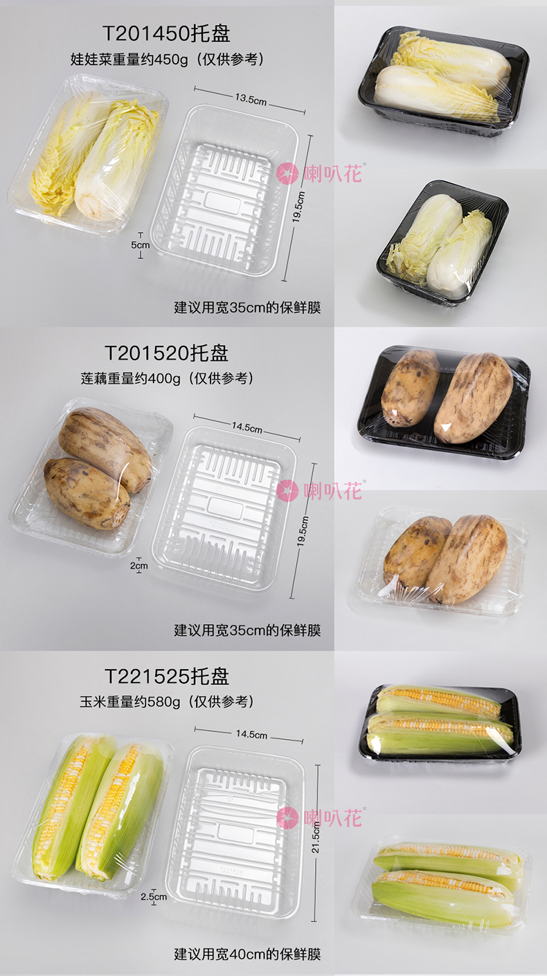 喇叭花一次性塑料托盘超市水果蔬菜包装盒透明餐盒生鲜托盘500个
