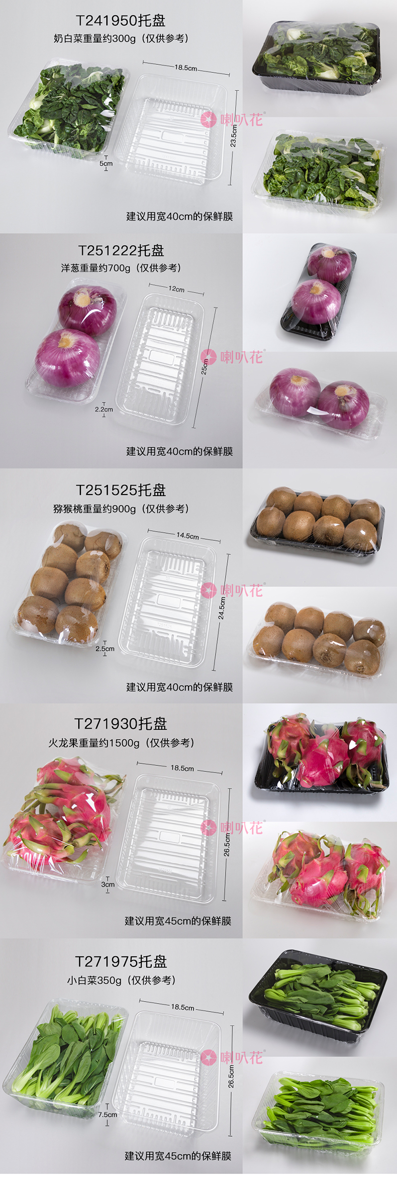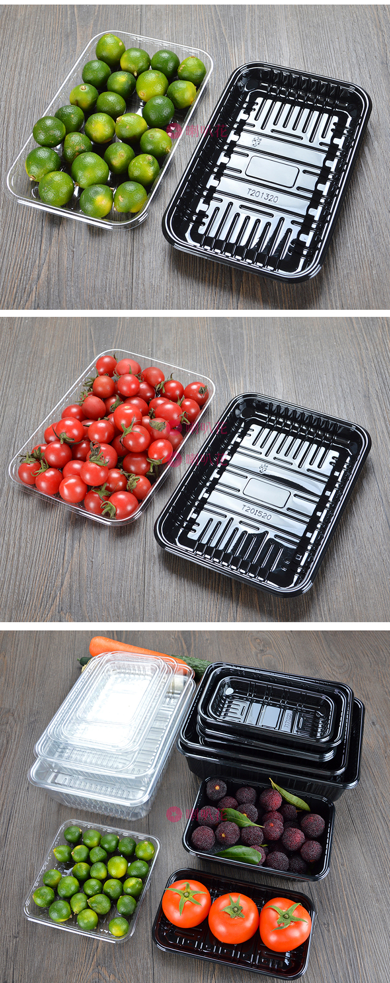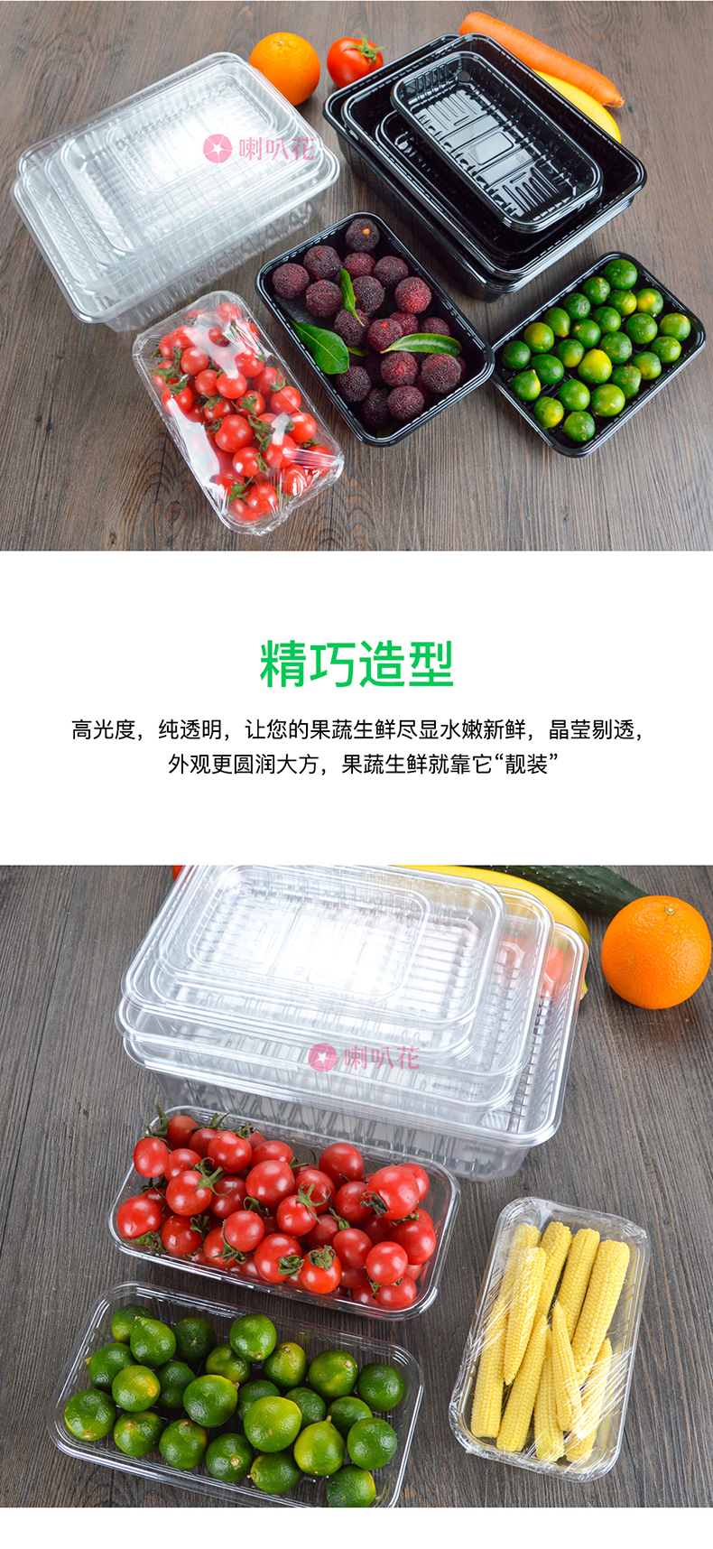 喇叭花一次性塑料托盘超市水果蔬菜包装盒透明餐盒生鲜托盘500个