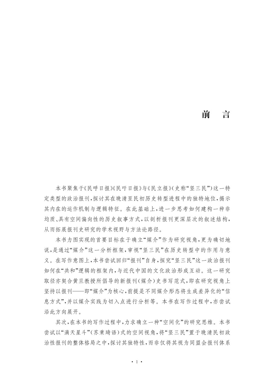 依凭;共和以立国,构成了现代中国的基本政治命题。以此为论说背景,本书旨在讨论中国政治报刊与;共和话语之间的互动关系。既有的报刊史书写,多从政治斗争的视角来观照中国近代政治报刊的实践,由此,报刊成为了工具性的存在,从而遮蔽了其主体性。与此不同,本书将;共和话语嵌入到政治报刊的实践之中。清末民初;共和的政治现代性,实则是竞争的现代性,由于近代政治报刊所想象的;共和繁复多变,由此带来多重的媒介化政治、报刊实践和传播关系。