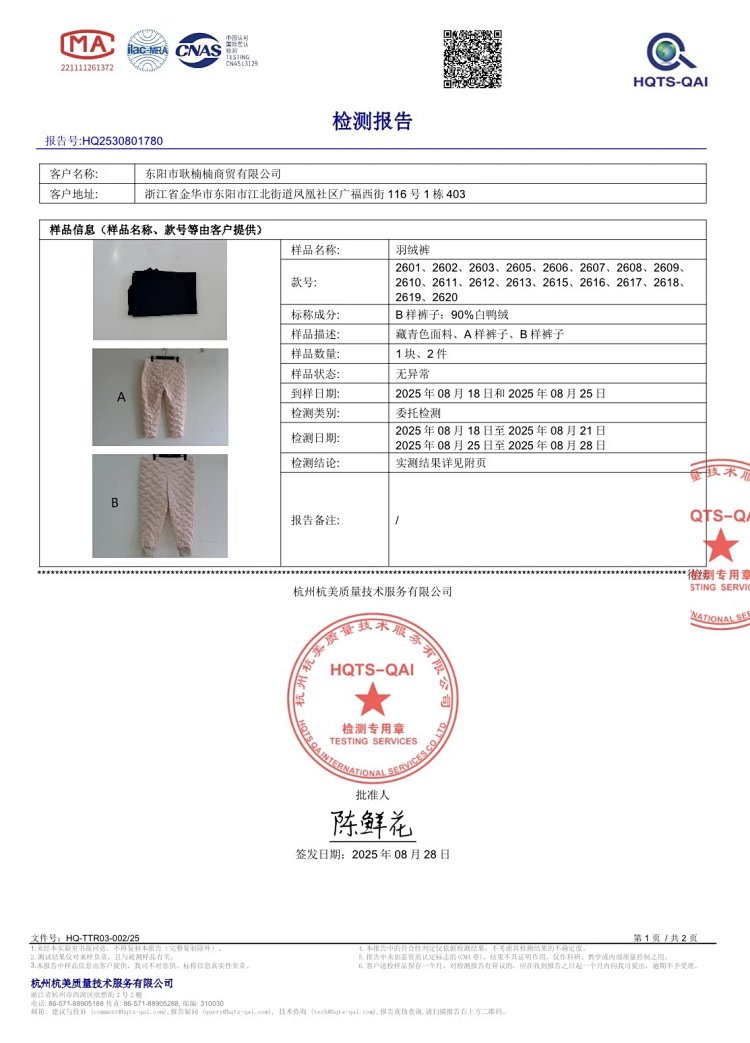 羽绒可追溯!已加入全球羽绒追溯系统,双份检测报告‼️