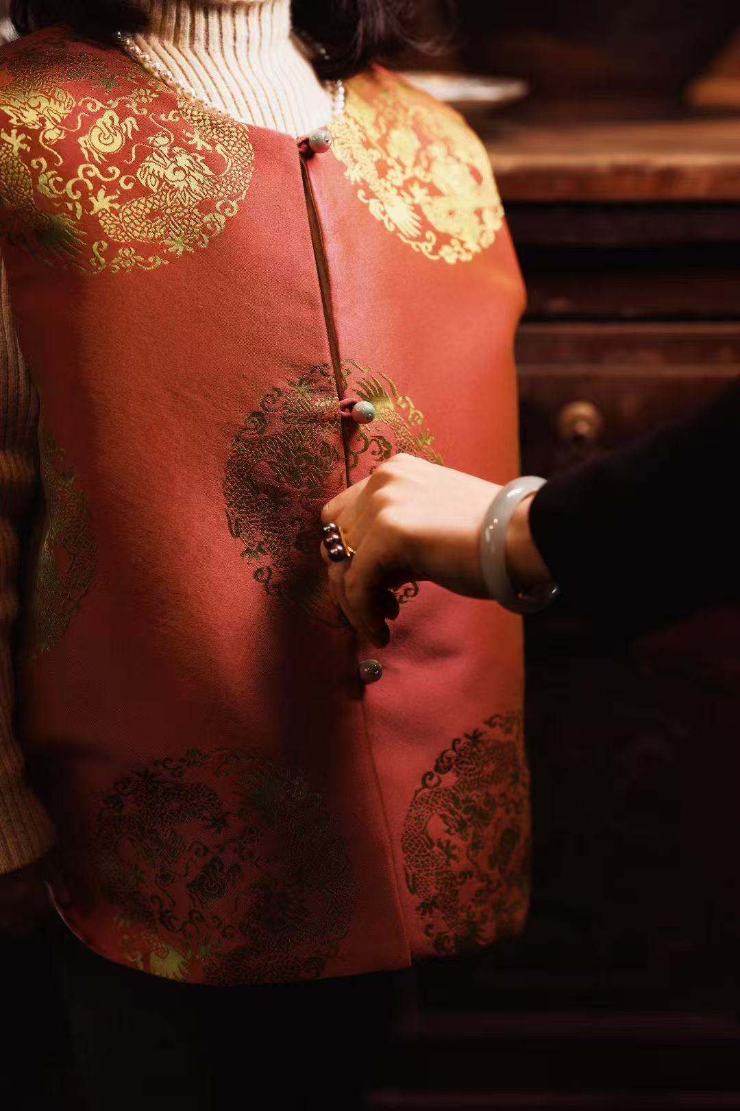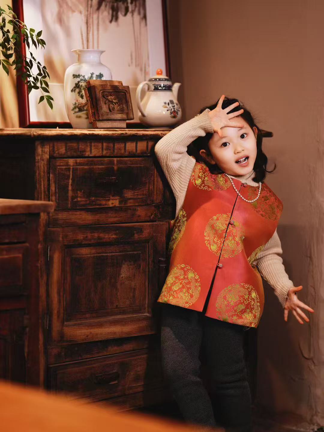 盛唐牡丹 | Kids 玫红色花蕾缎马甲