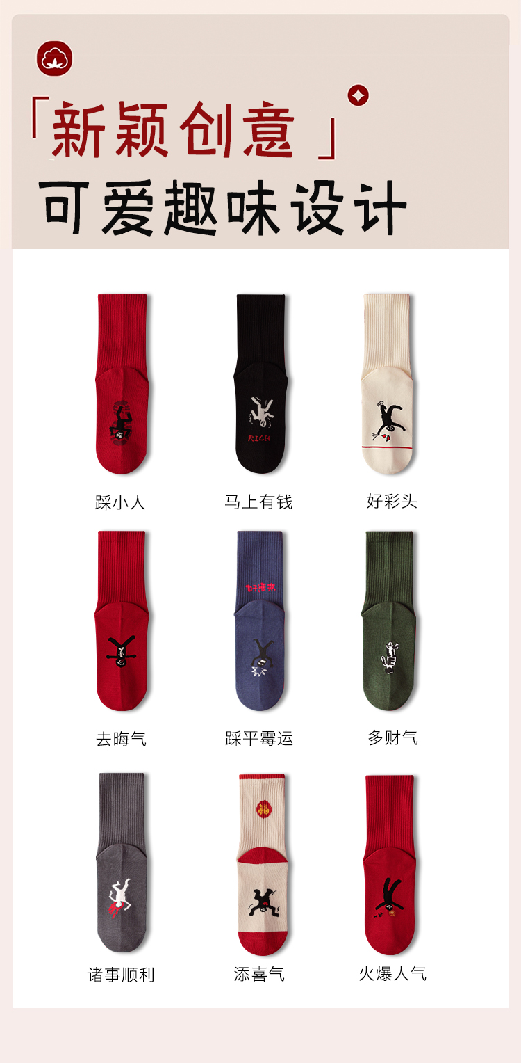 MC210踩小人情侣款本命年无骨红袜