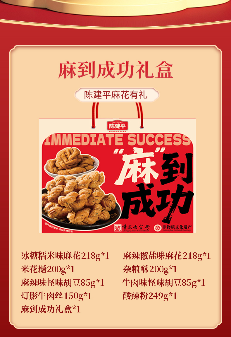麻到成功年货礼盒陈建平重庆特产麻花年礼礼盒特产小吃麻花送礼