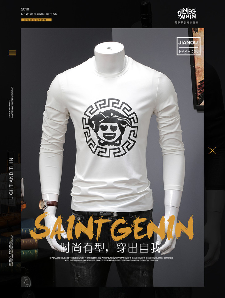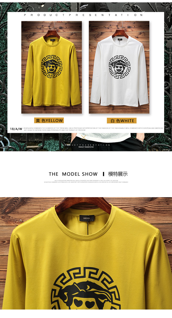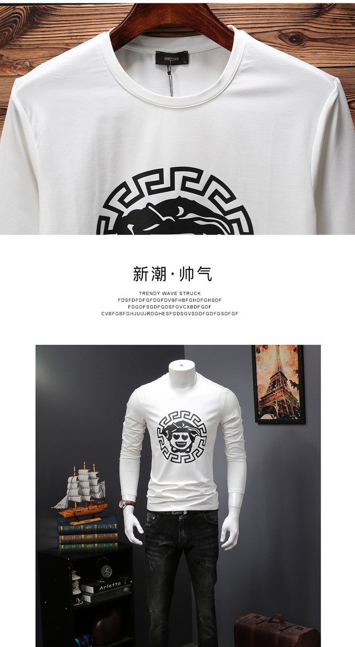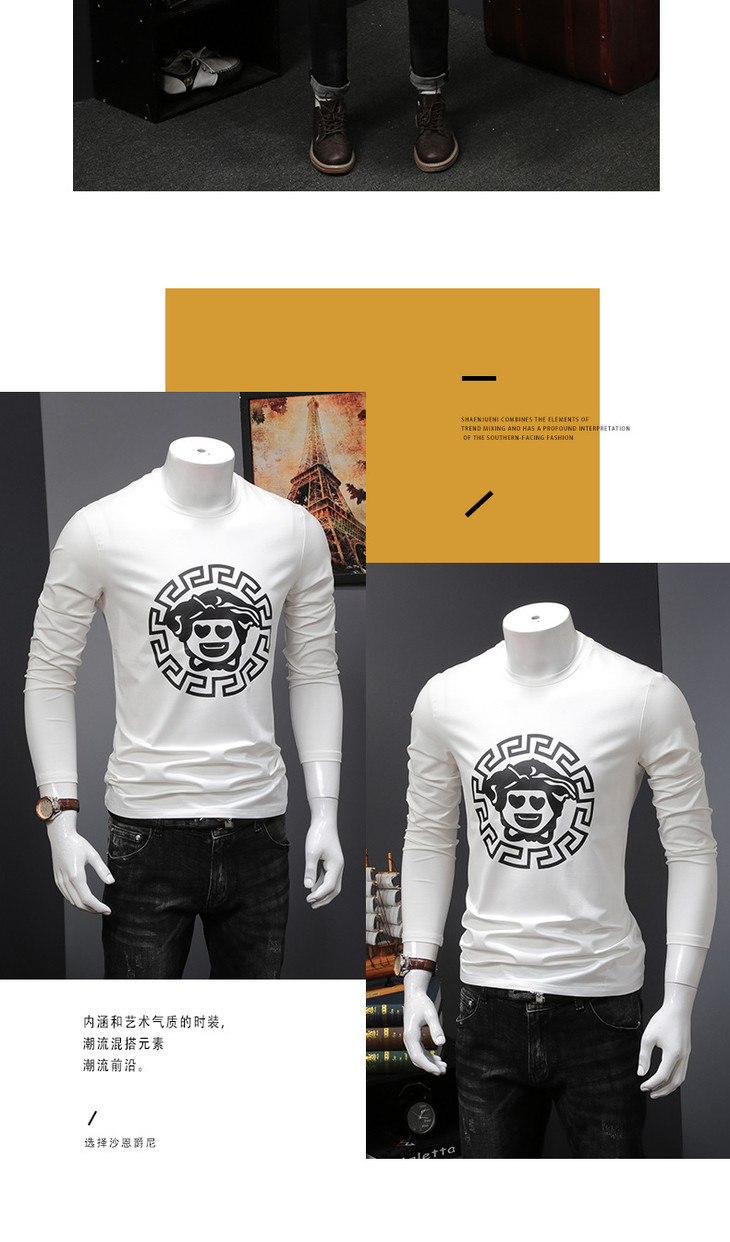 【服饰鞋包】沙恩爵尼男装男士秋季长袖t恤宽松麻棉印花休闲圆领男式上衣