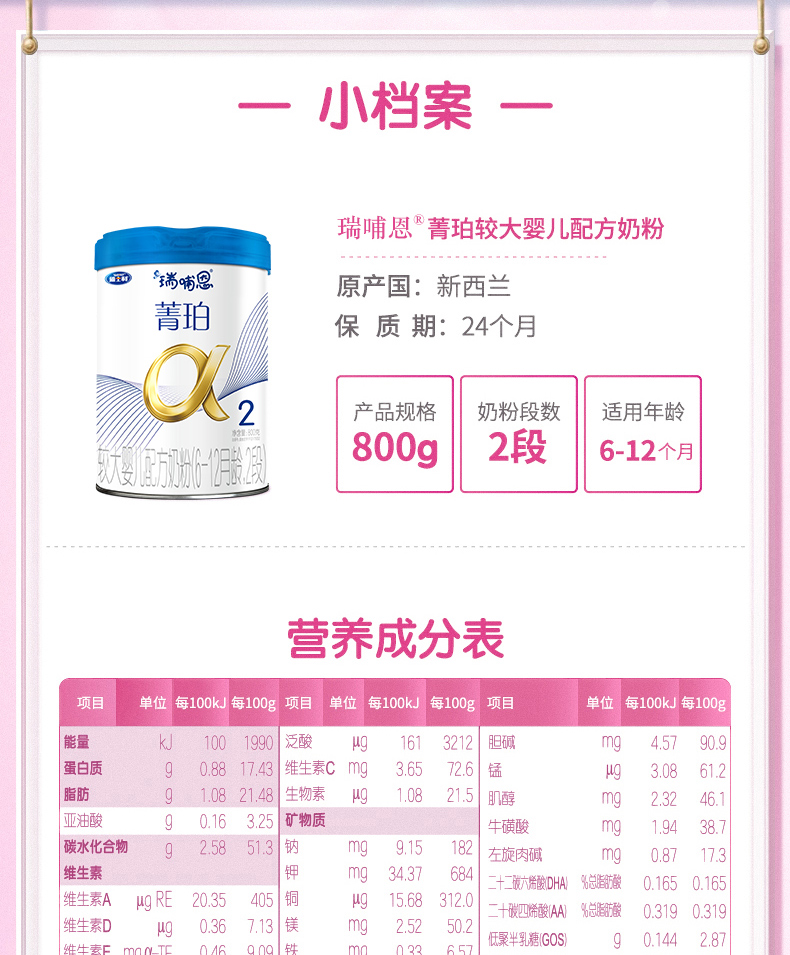 雅士利瑞哺恩菁珀2段奶粉800g克