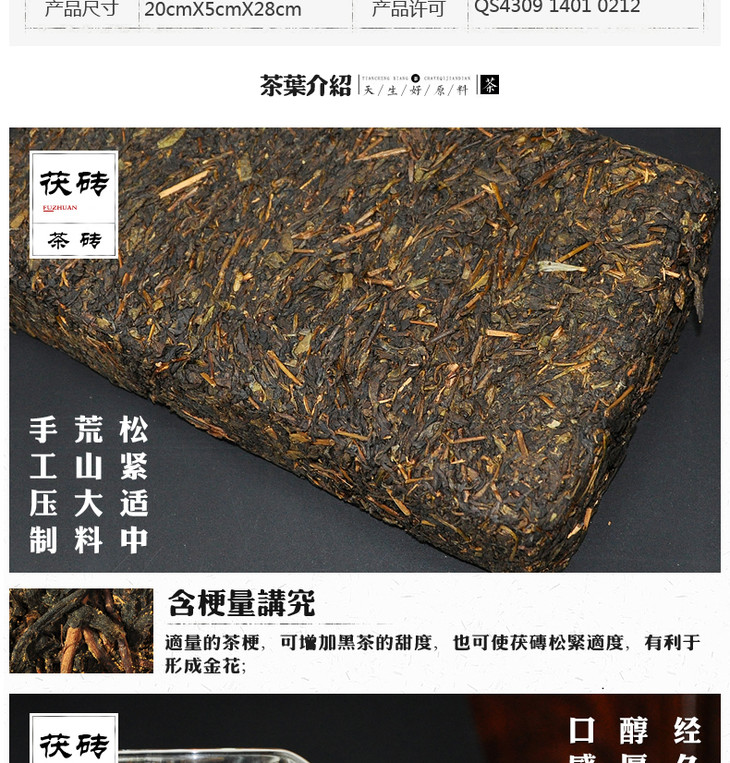 黑茶 高马二溪 2017年手筑原叶茯茶 金花茯砖 1kg