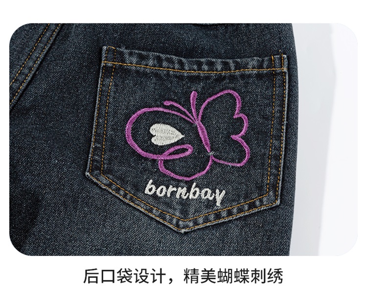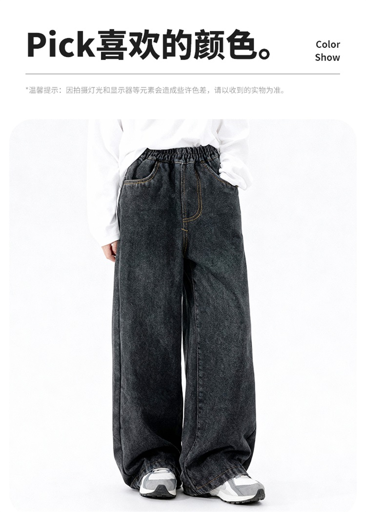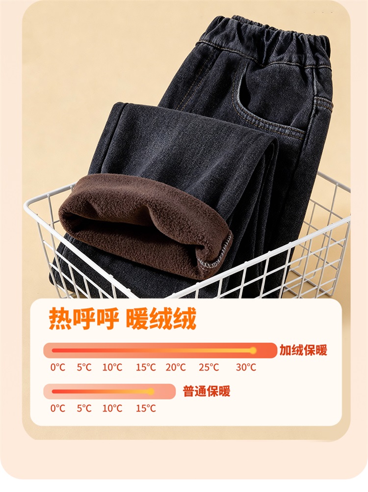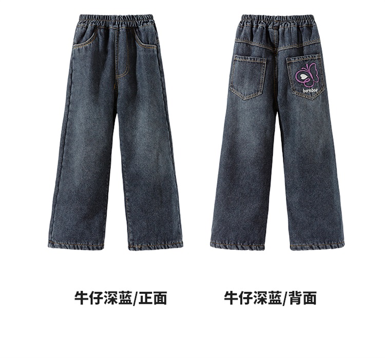 贝贝怡童装女童加绒牛仔裤大童青少年直筒阔腿长裤加厚保暖休闲裤ZB4EK051