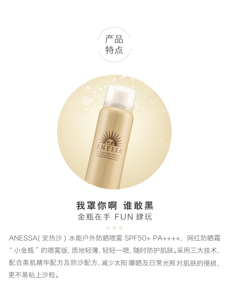 【海外直邮】SHISEIDO资生堂安耐晒水能户外防晒喷雾小金瓶安热沙60gSPF50+ PA++++