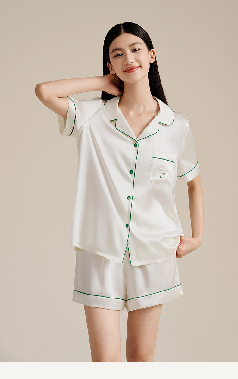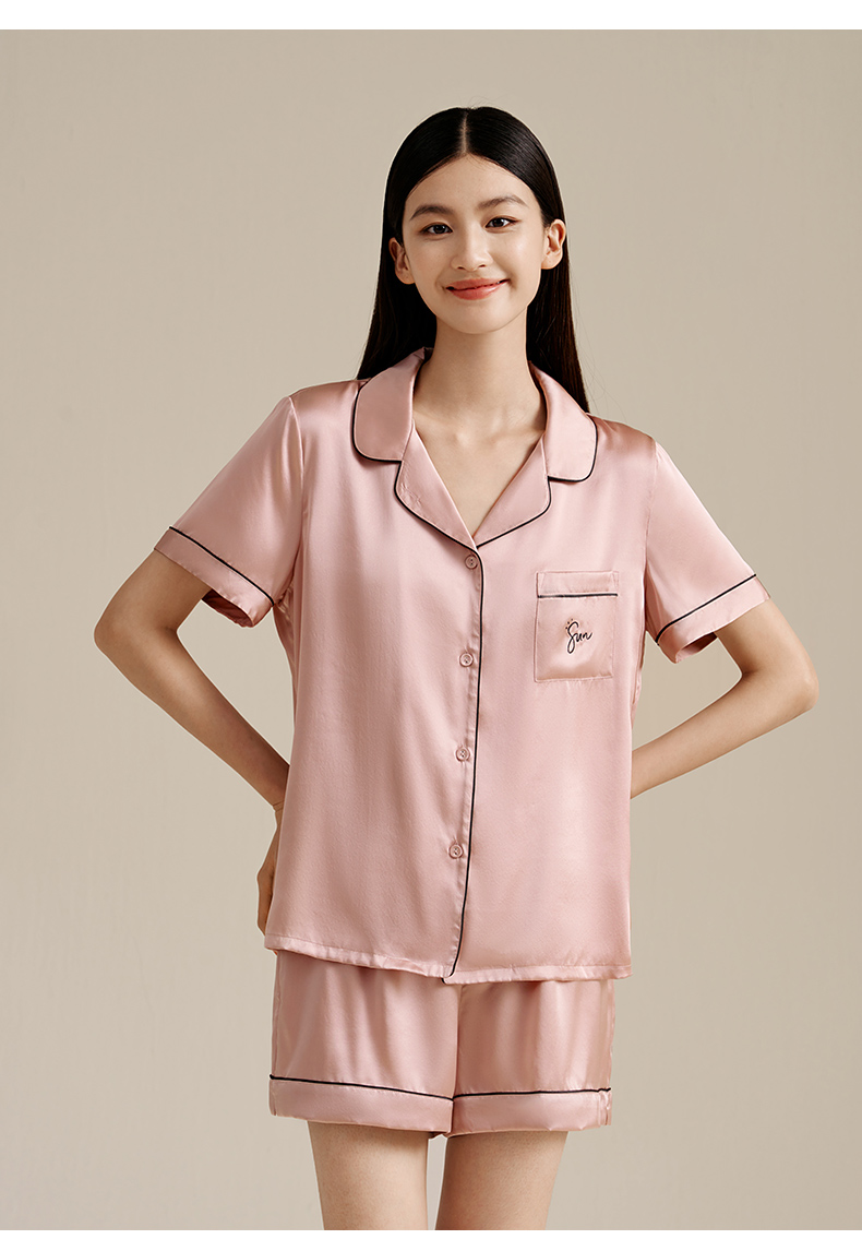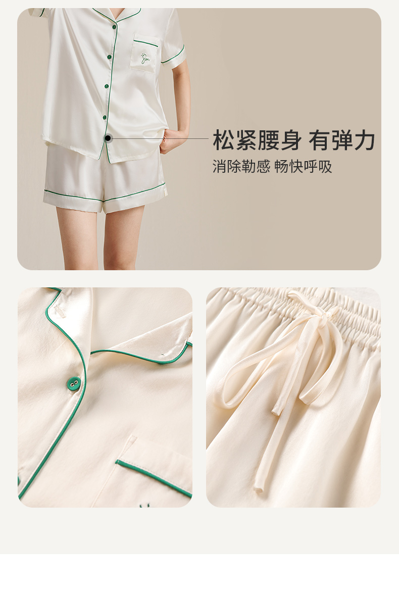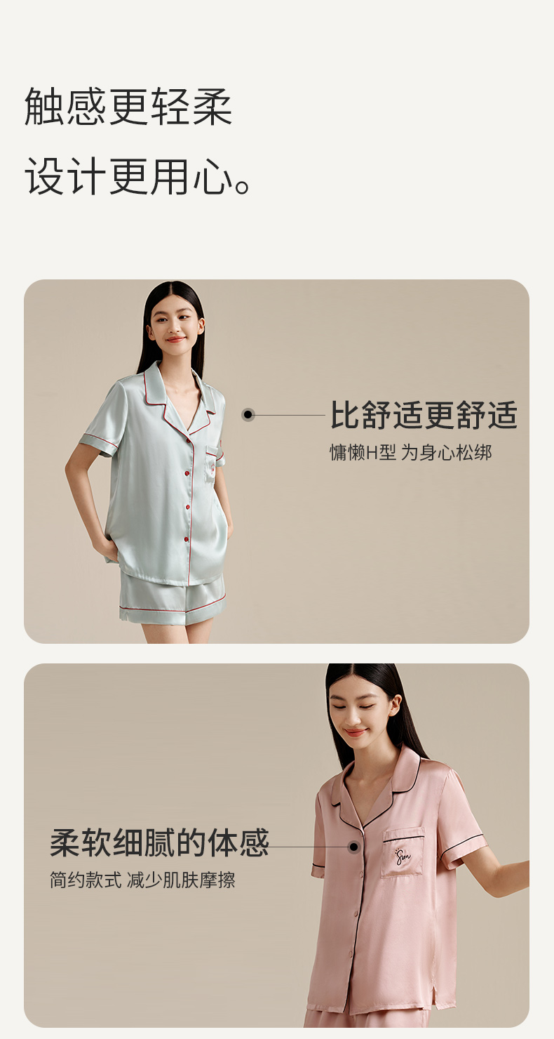 金三塔100%桑蚕丝女真丝睡衣短袖衣裤套舒适凉感时尚家居服睡衣可外穿 YSFBA499/YSFBA408(限价款)