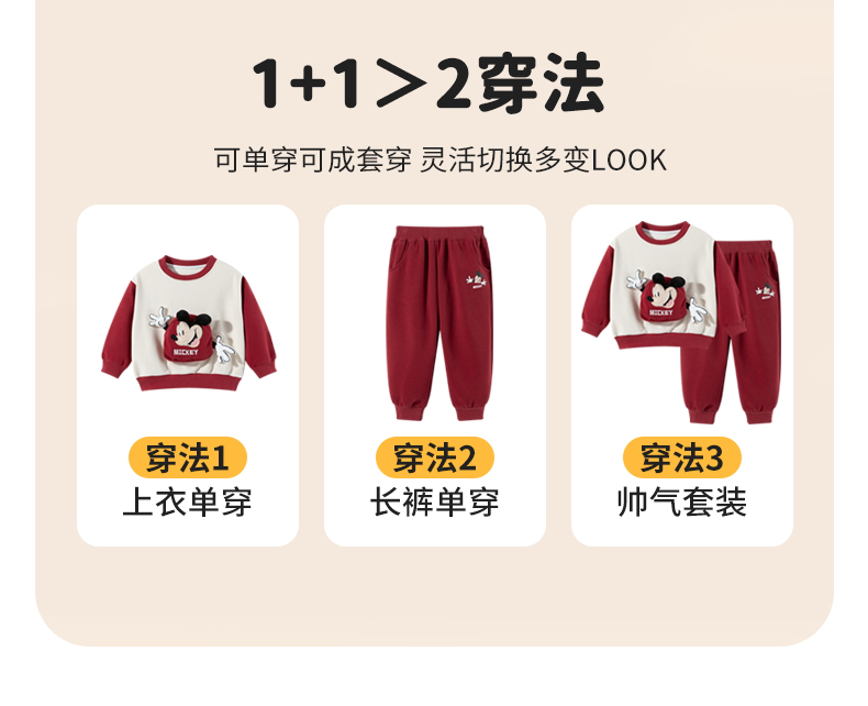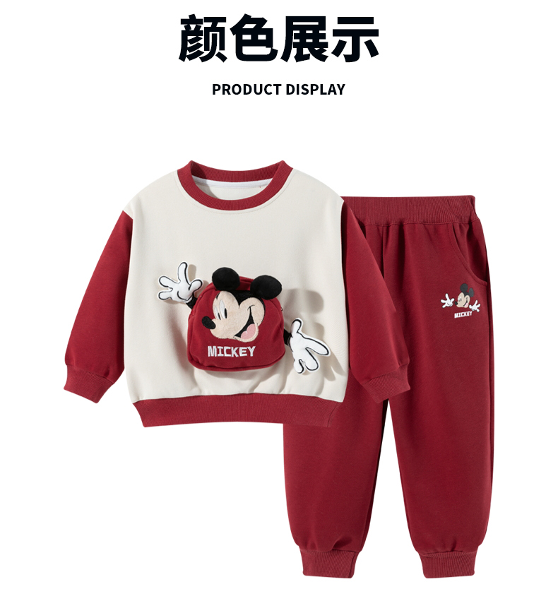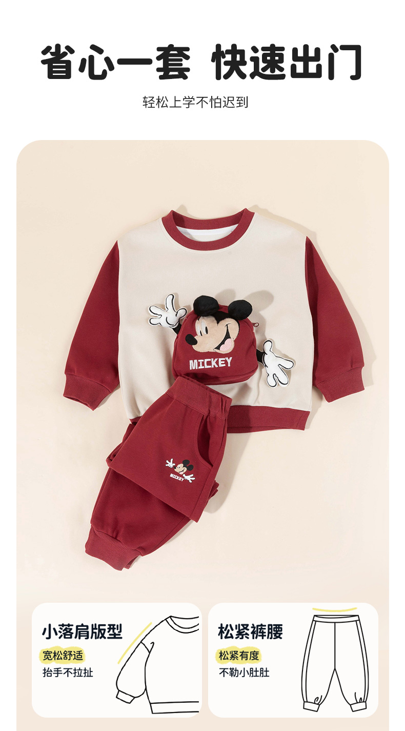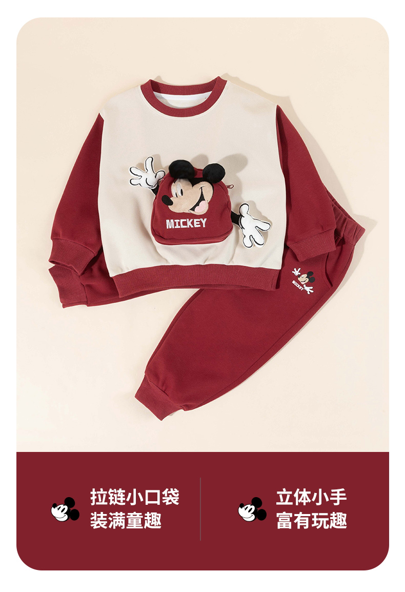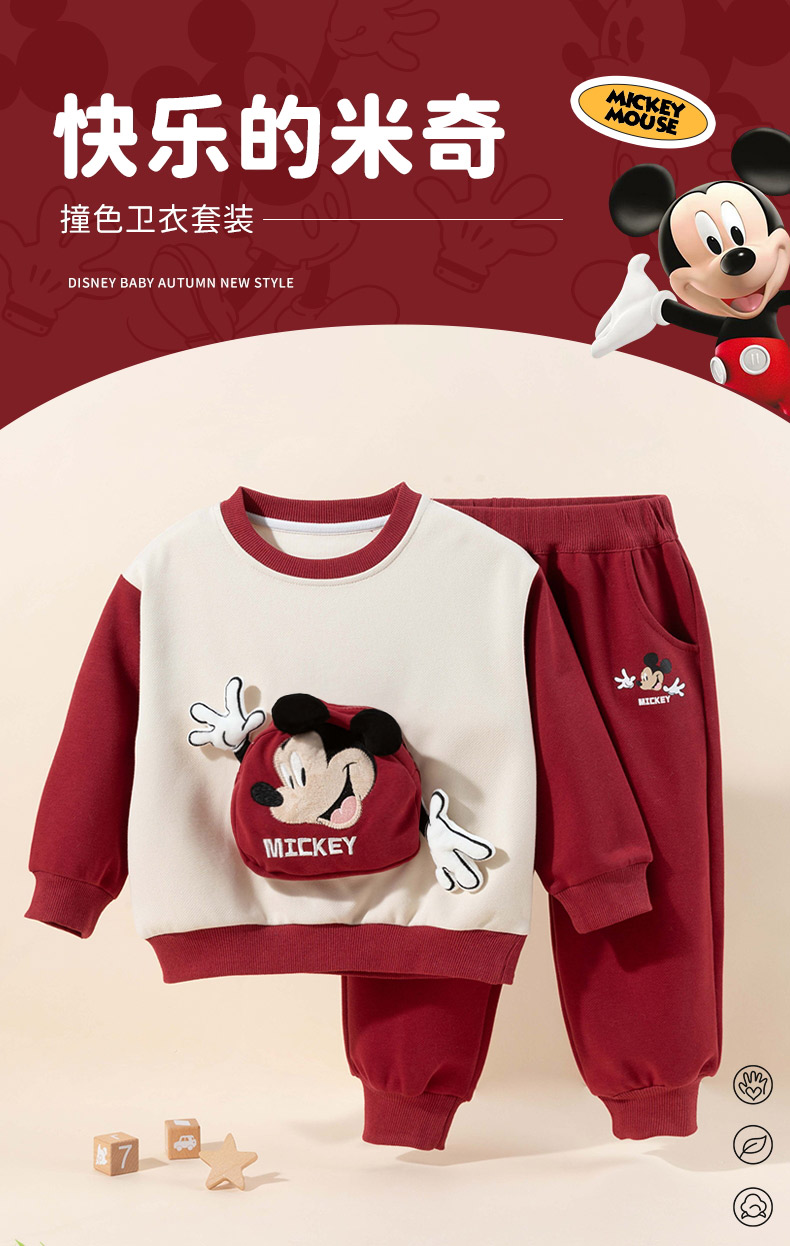 迪士尼【立体米奇口袋】24秋冬新款男童套装时尚撞色卫衣卫裤两件套ZD3DT046
