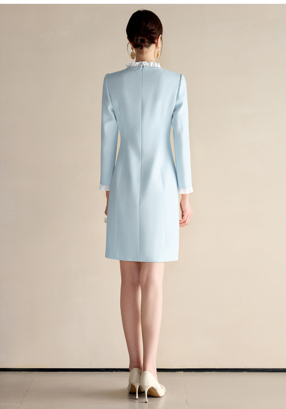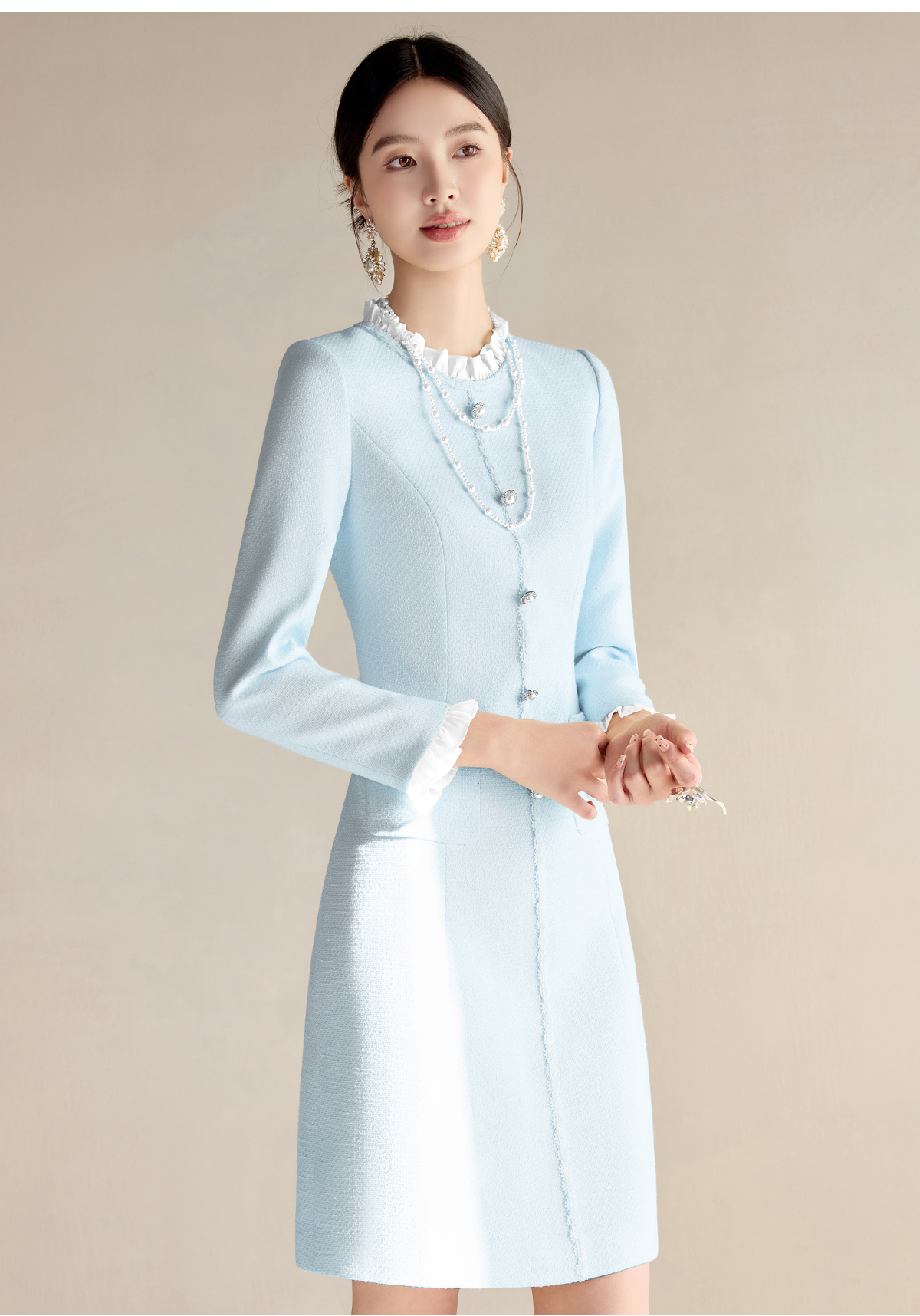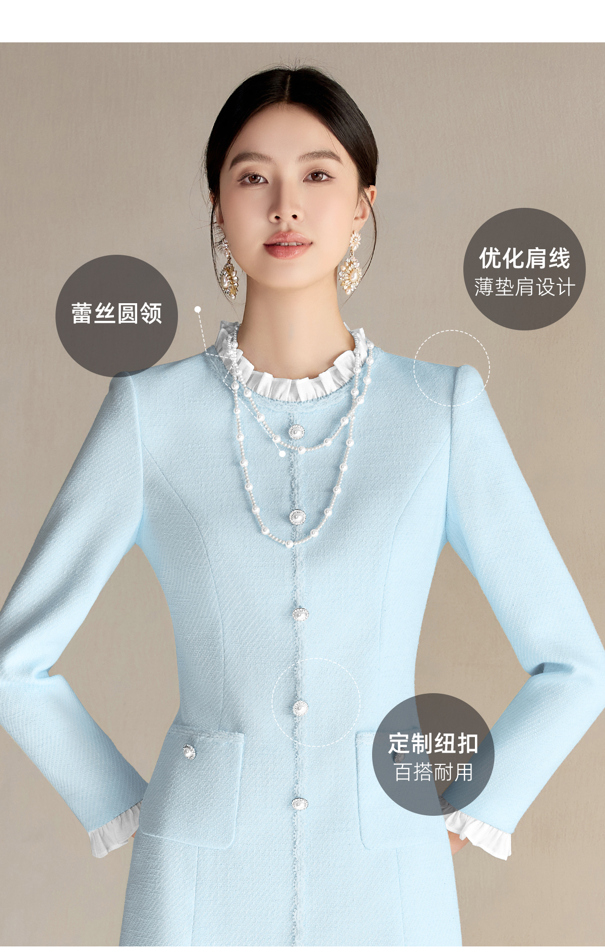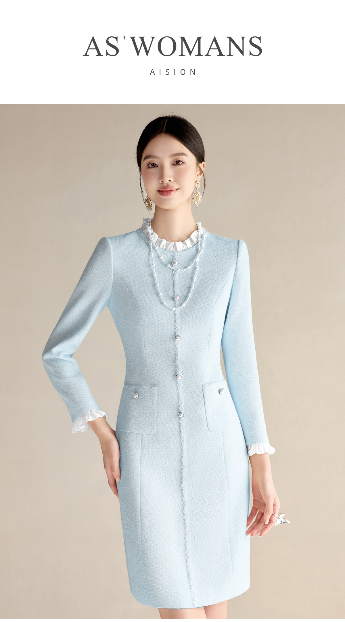 艾尚臣小香风连衣裙女2025春季新款时尚长袖裙子优雅花边领西装裙