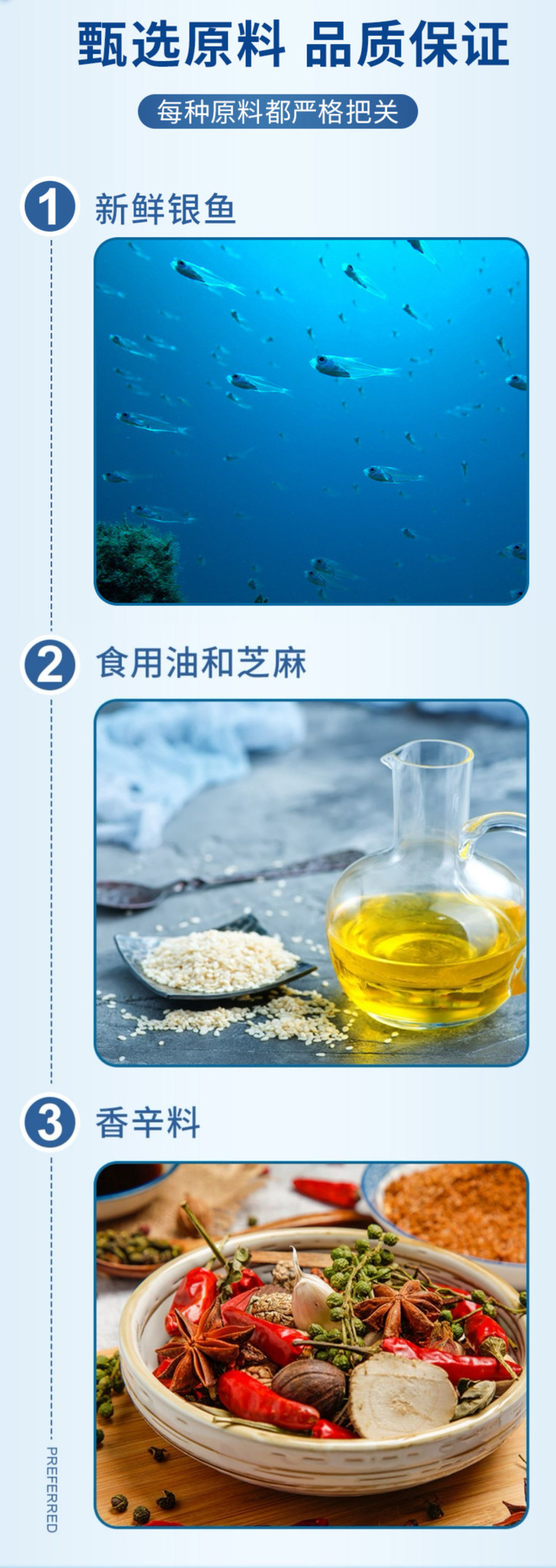 昌茂的香辣小银鱼,选用无污染海域新鲜捕捞的小银鱼,去掉头尾只选取精华的中段部分,加入食用油、芝麻和秘制香辛料。每口都是肥美的鱼肉,又很有嚼劲,既能当小零食,还能做小菜下饭!