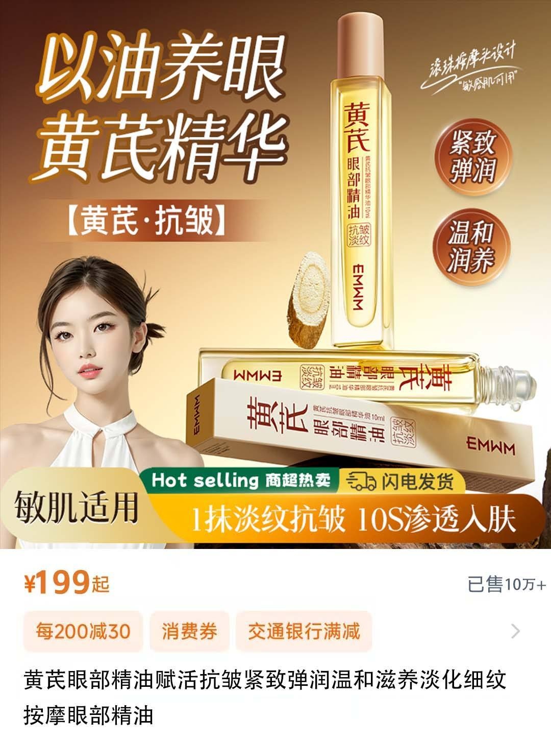 黄芪复配进口大牌成分+专利技术,根源焕新眼周~