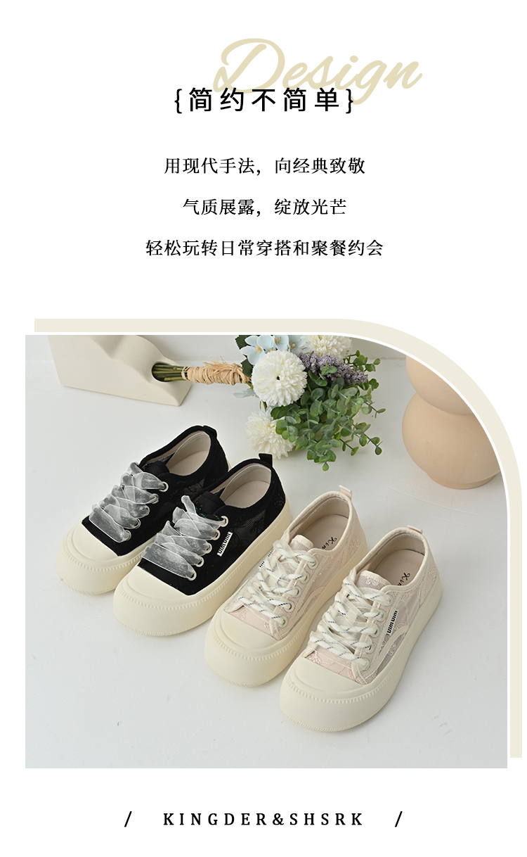 经典鲨2025年夏季新款韩版系带网纱透气平底休闲鞋小白鞋女KW213-529011