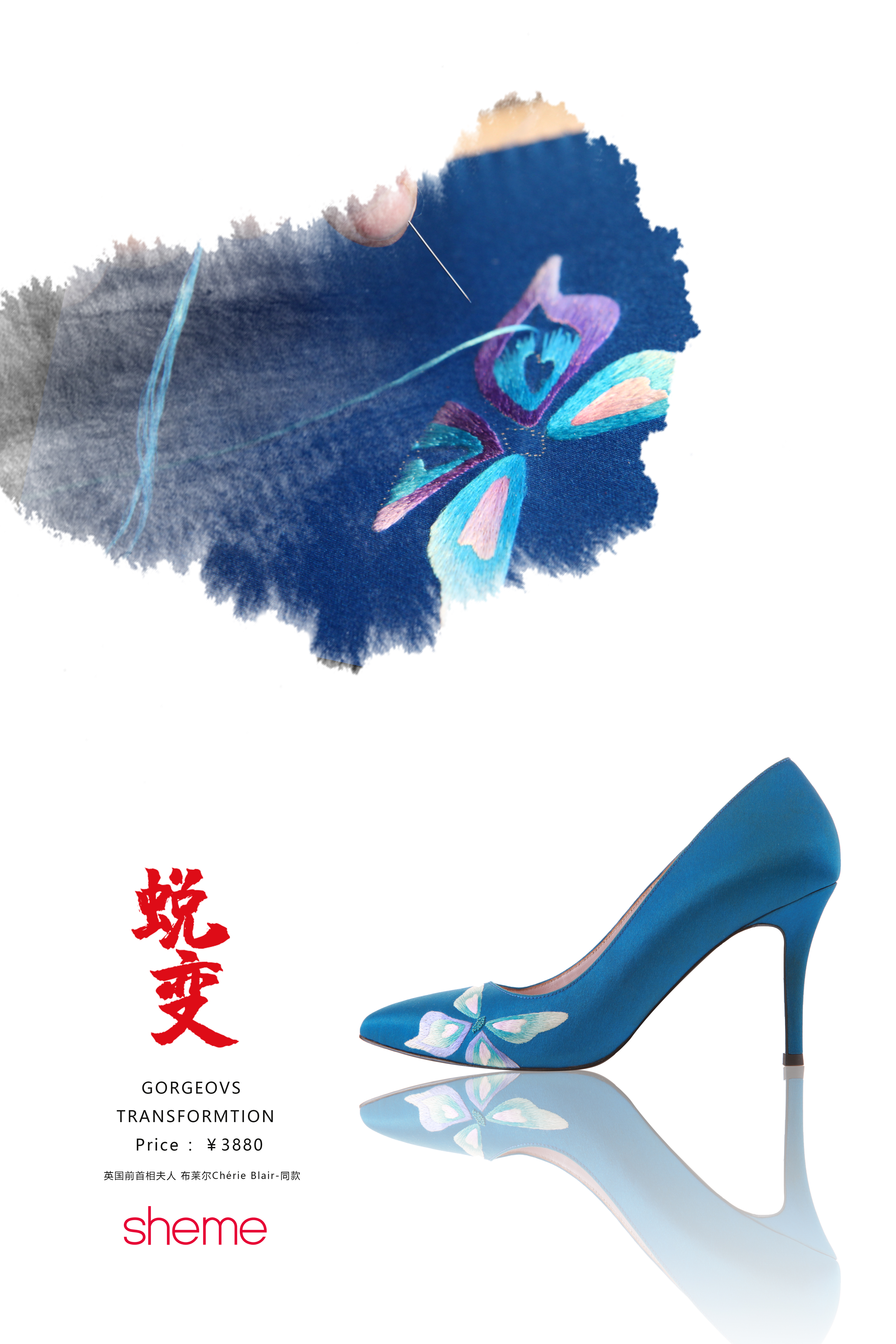 名称:《蜕变》sheme英国前首相夫人定制蝴蝶刺绣高跟单鞋