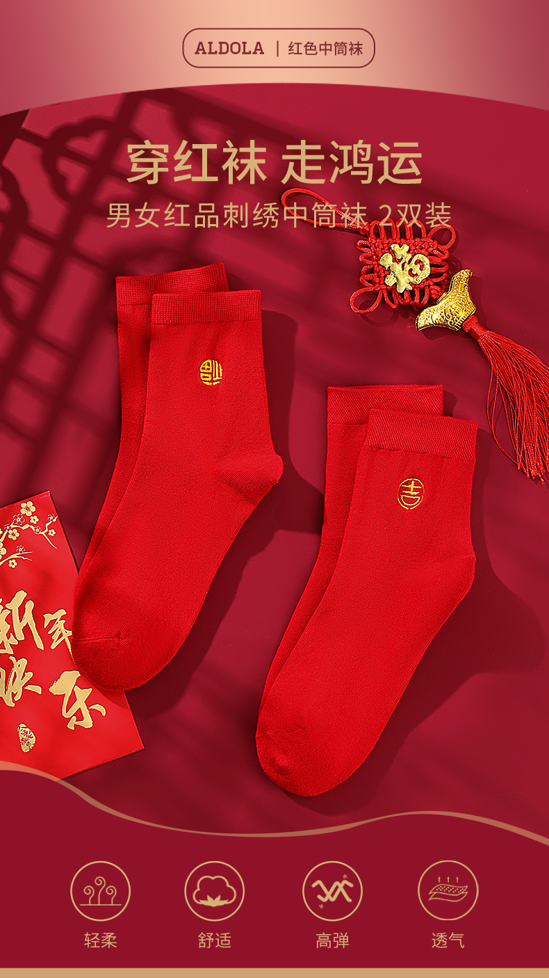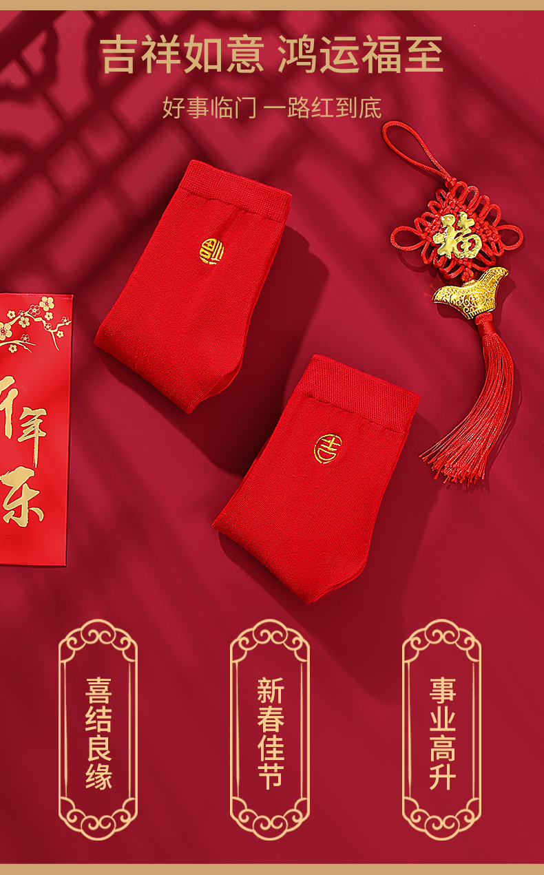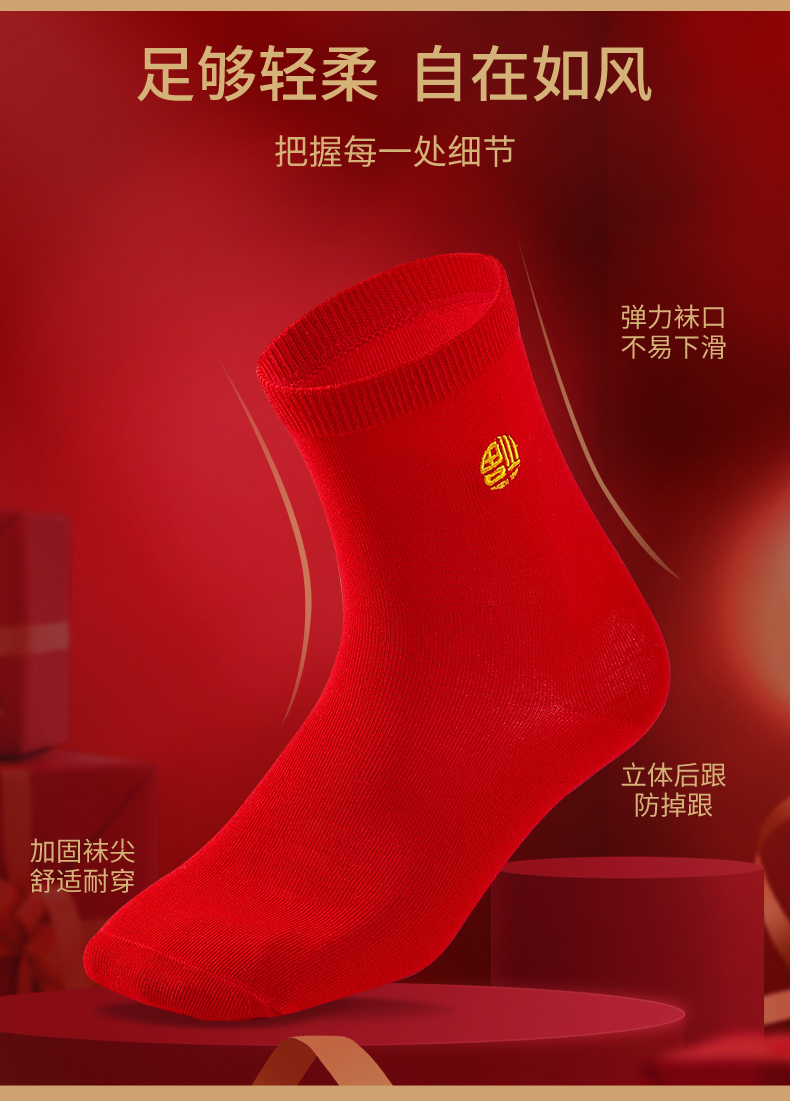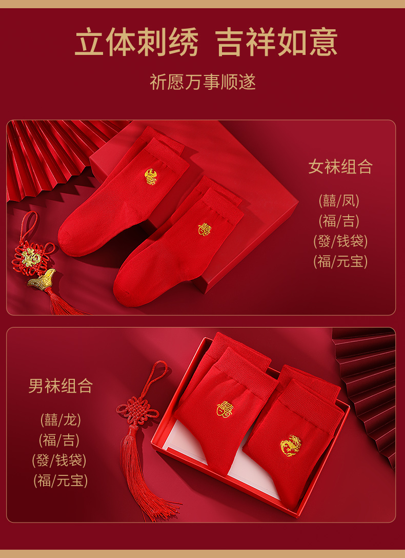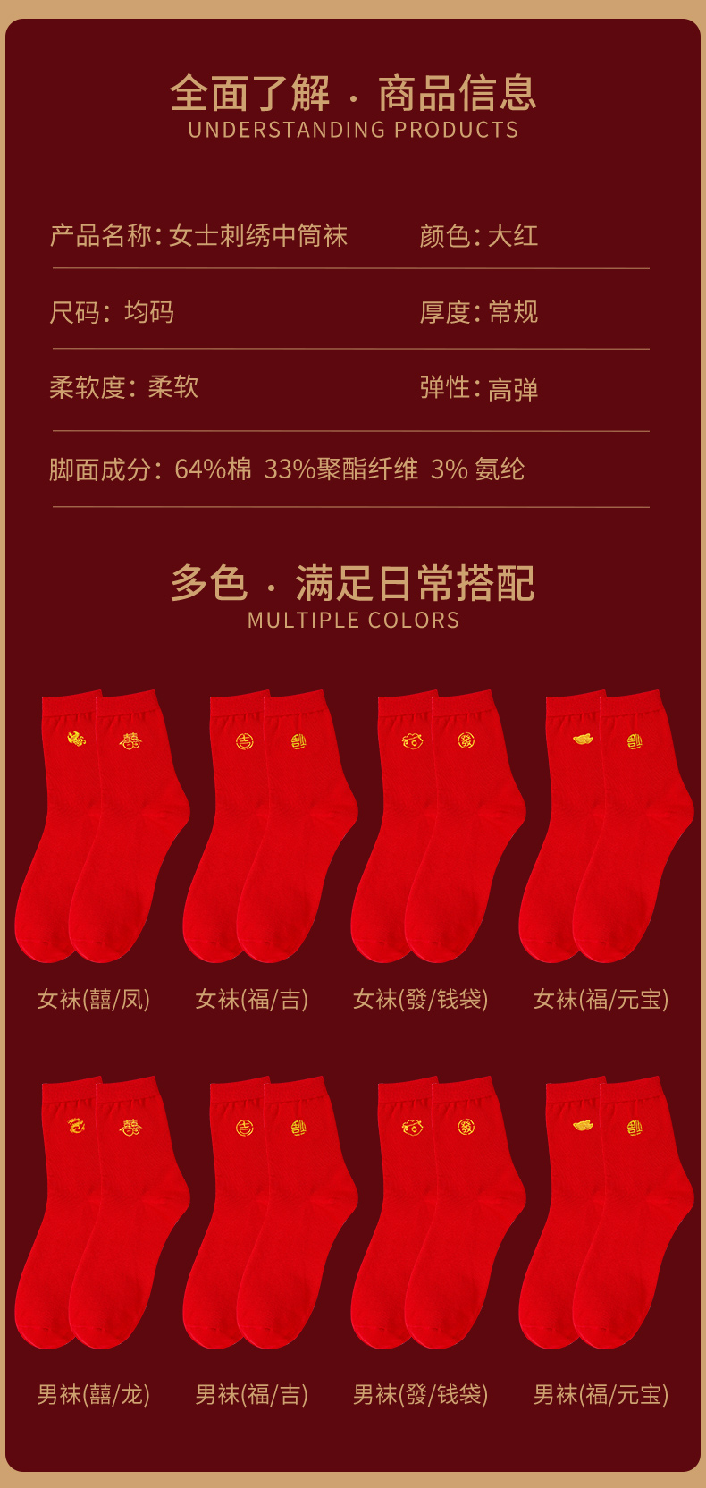 雅黛丽本命年红色袜子情侣结婚福字礼物棉袜男女中筒袜长袜秋冬季