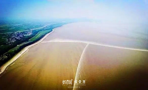 两股潮头在绕过沙洲后,就像两兄弟一样交叉相抱