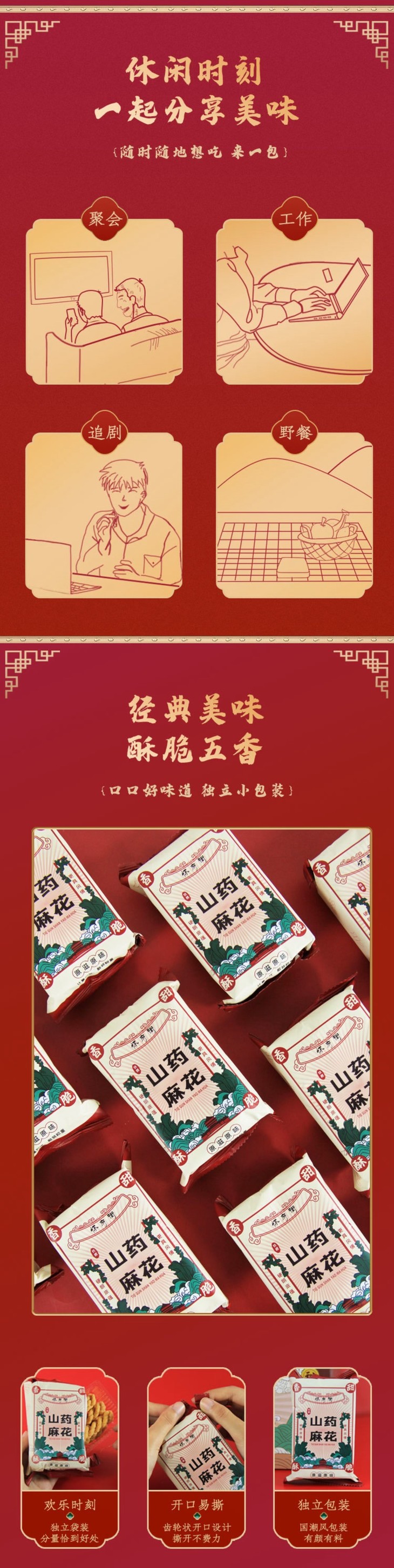 山药麻花包装也很好,大纸箱里面是小袋子,里面还都配有托托,尽量减少快递过程中碎掉,但,还是会碎一些些的。。。与传统麻花相比,怀府街山药麻花会更加酥脆,而且还有山药独有的香气,而且小小一根,吃起来没有负担,咔咔啃!刷剧、下午茶、嘴巴寂寞时,一撕一拉就能爽起来啦!现在上新还有小活动,买一箱赠怀菊花一盒哦!