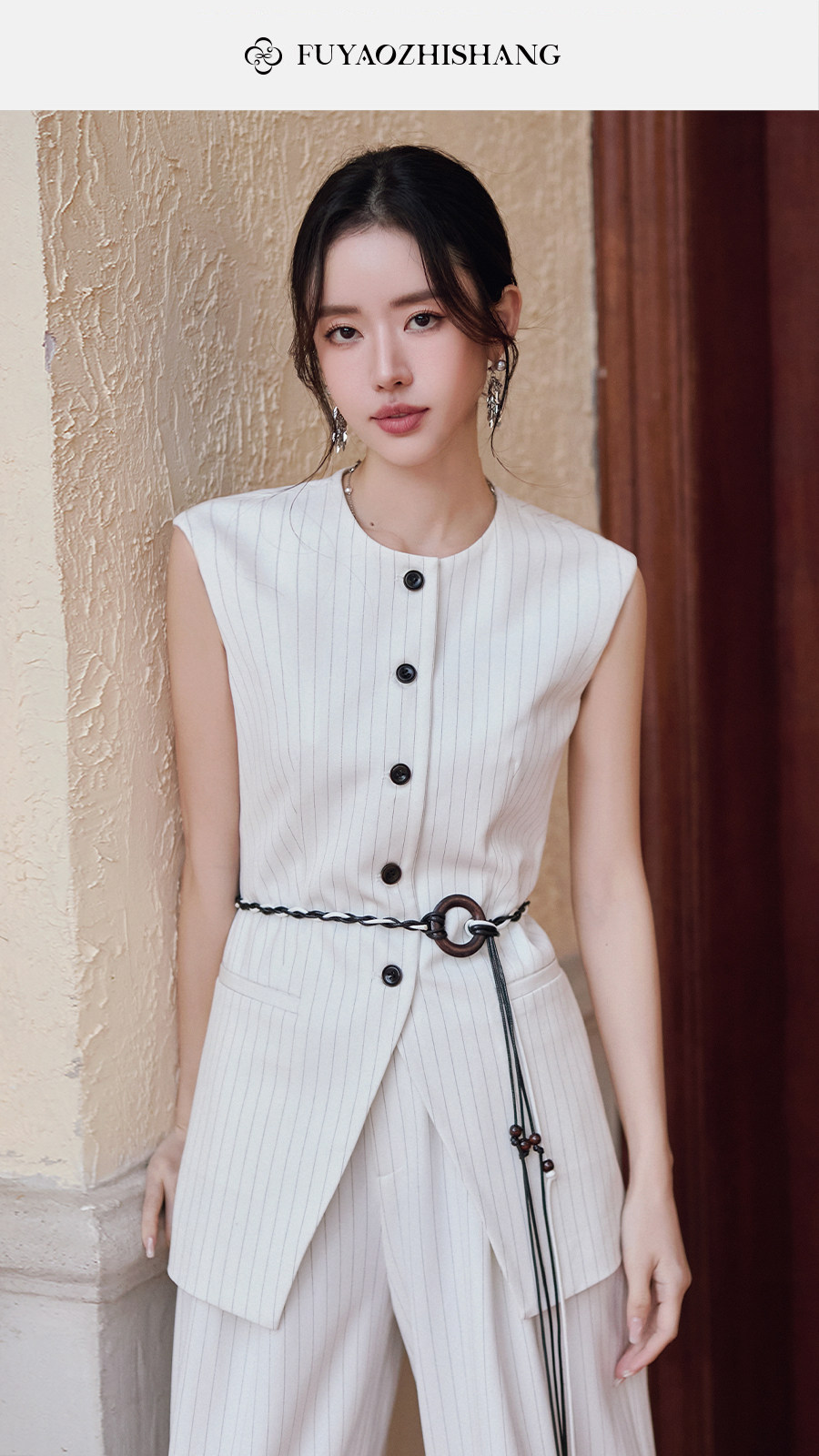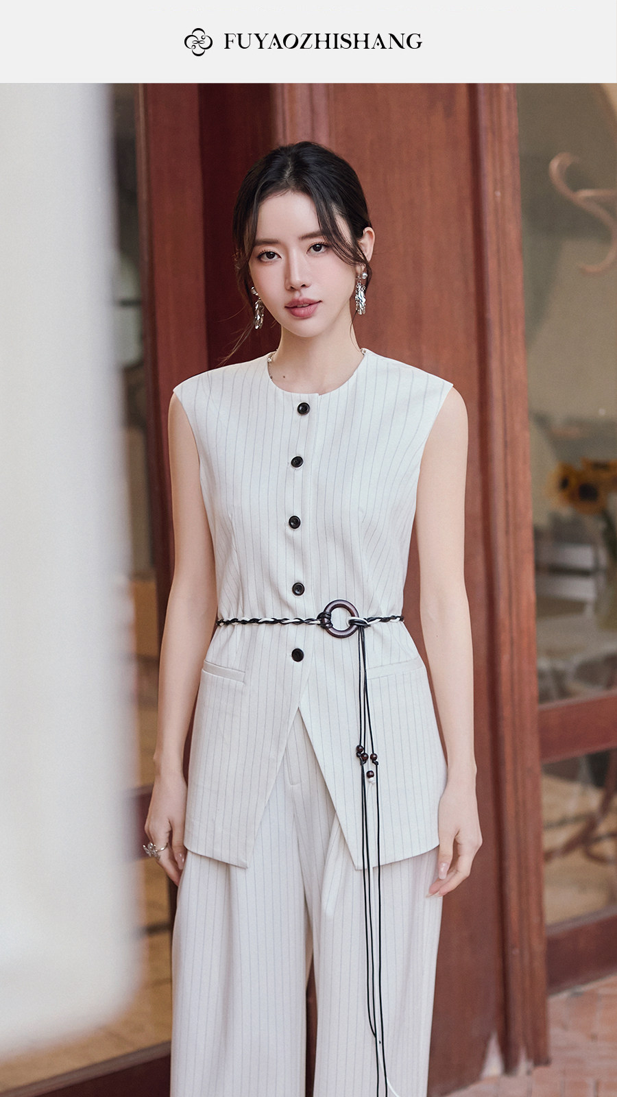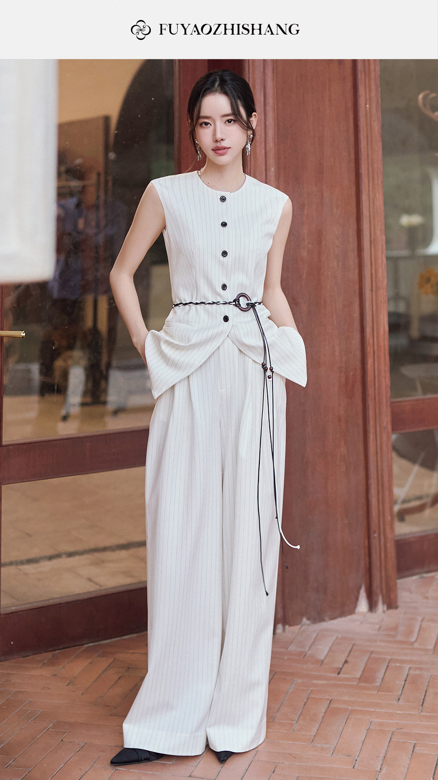 FUYAO扶摇直上 戏蕴东方风 条纹阔腿裤两件套女夏老钱风无袖外套
