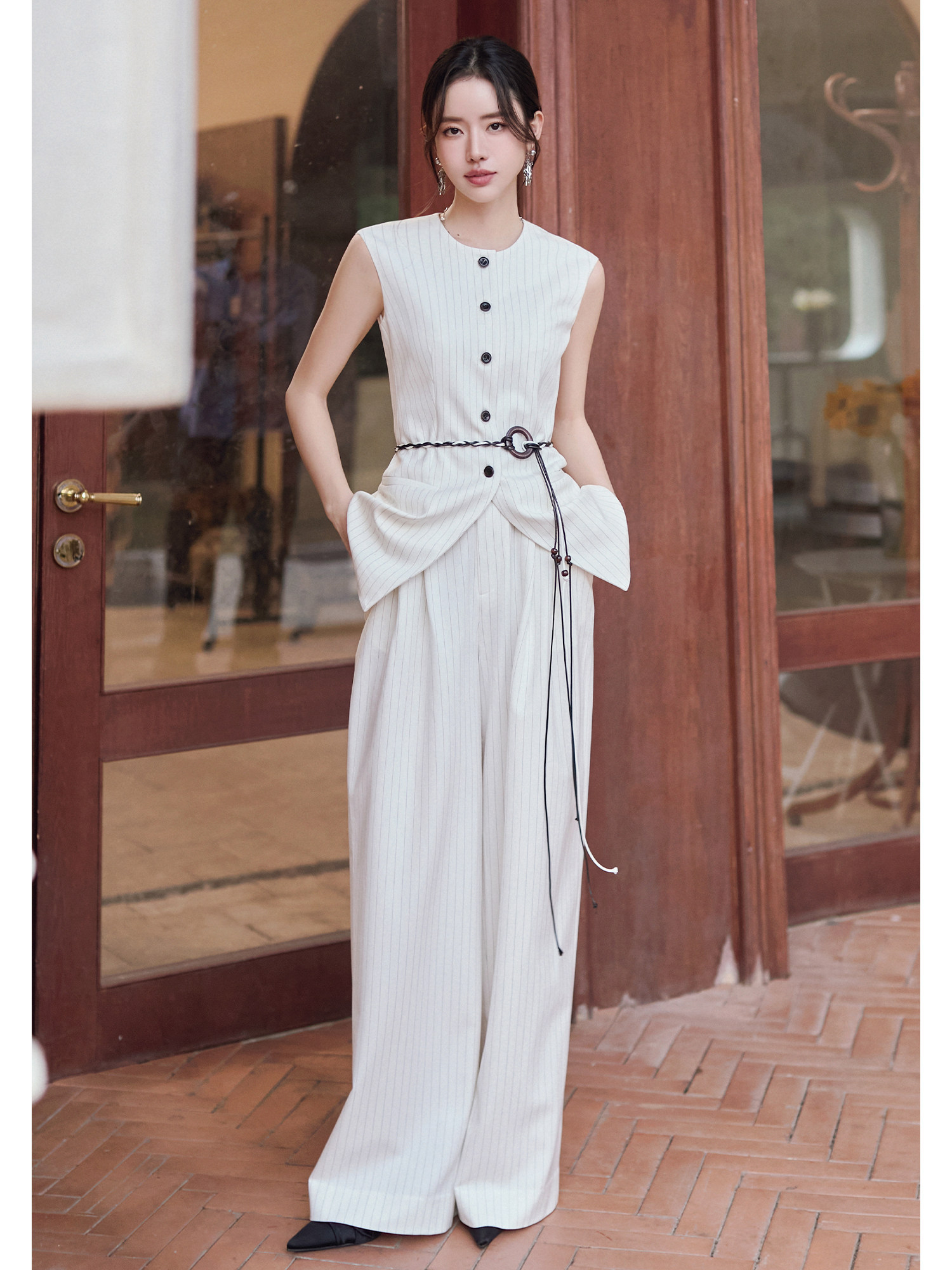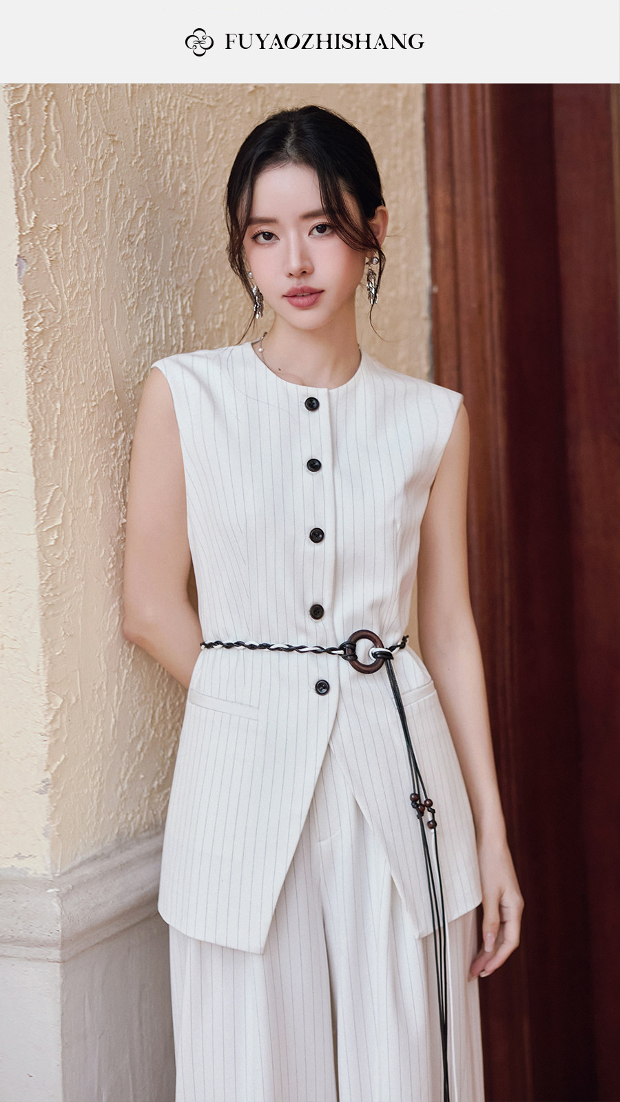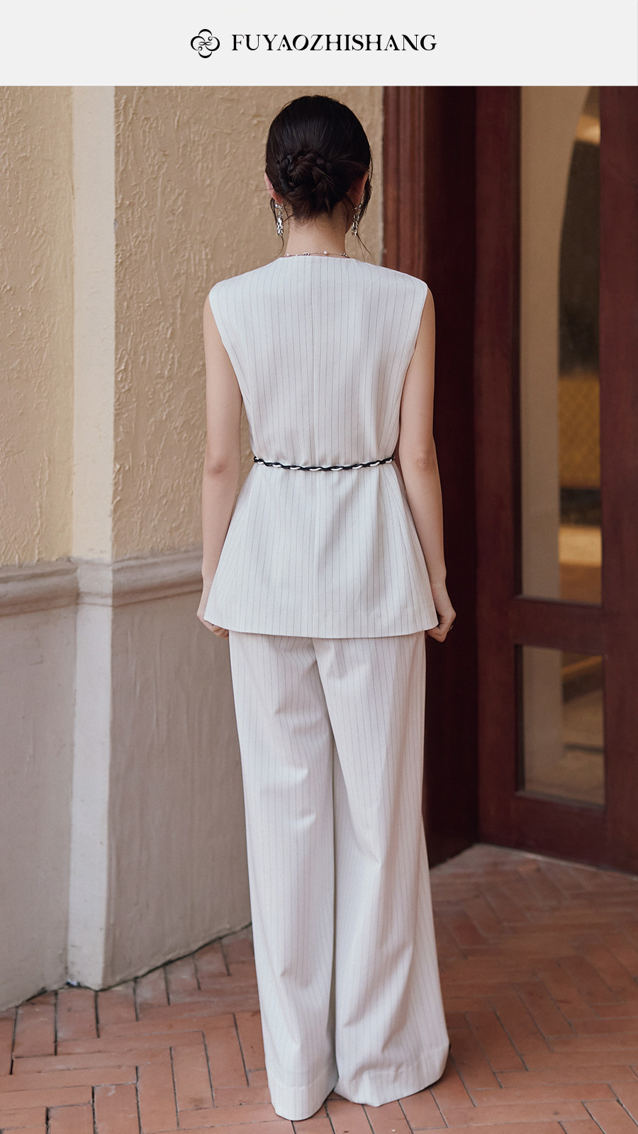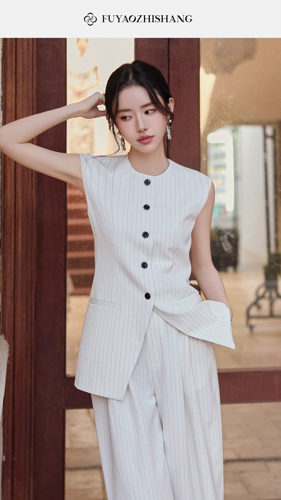 FUYAO扶摇直上 戏蕴东方风 条纹阔腿裤两件套女夏老钱风无袖外套