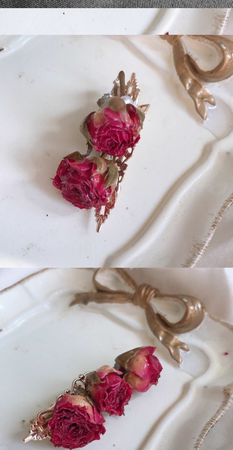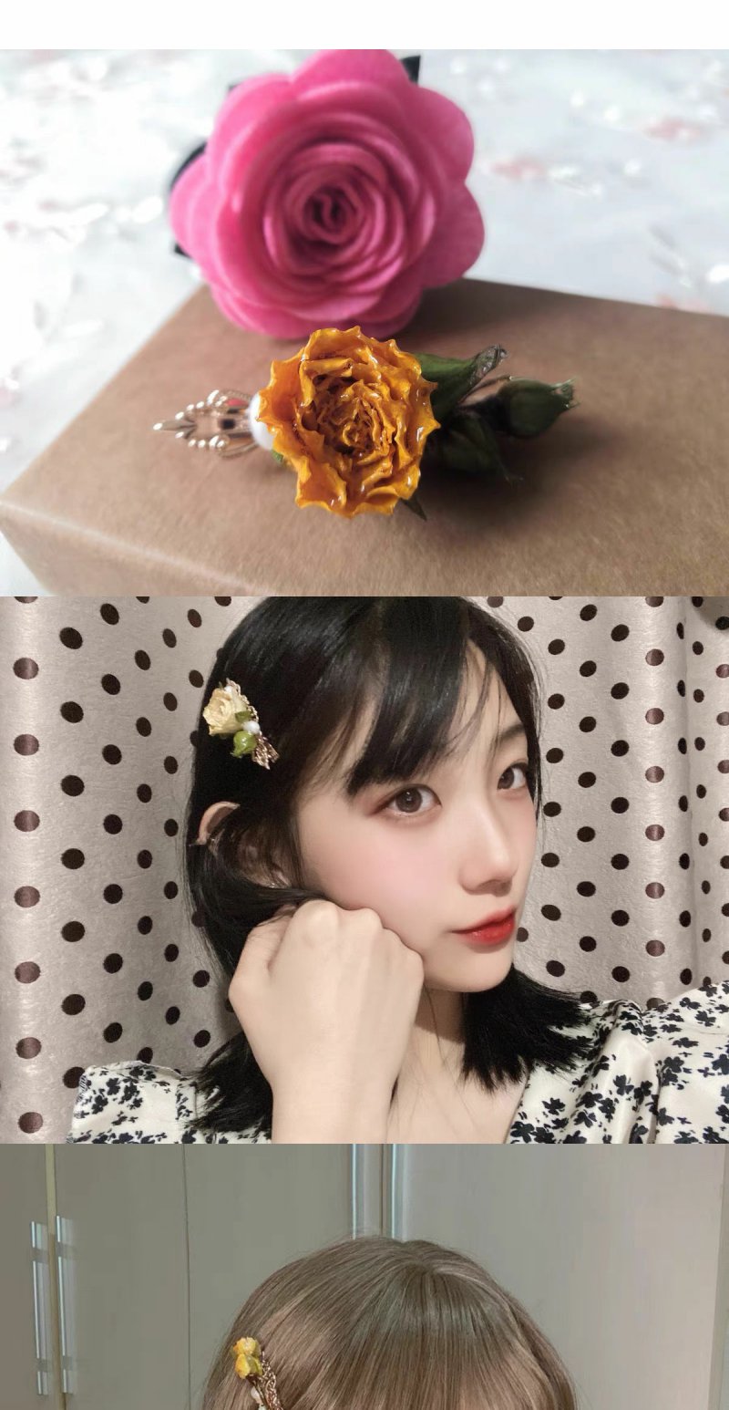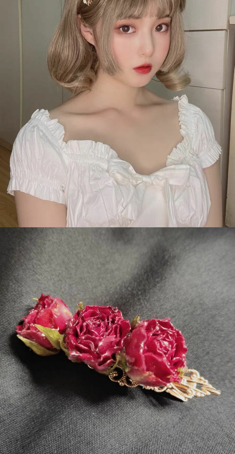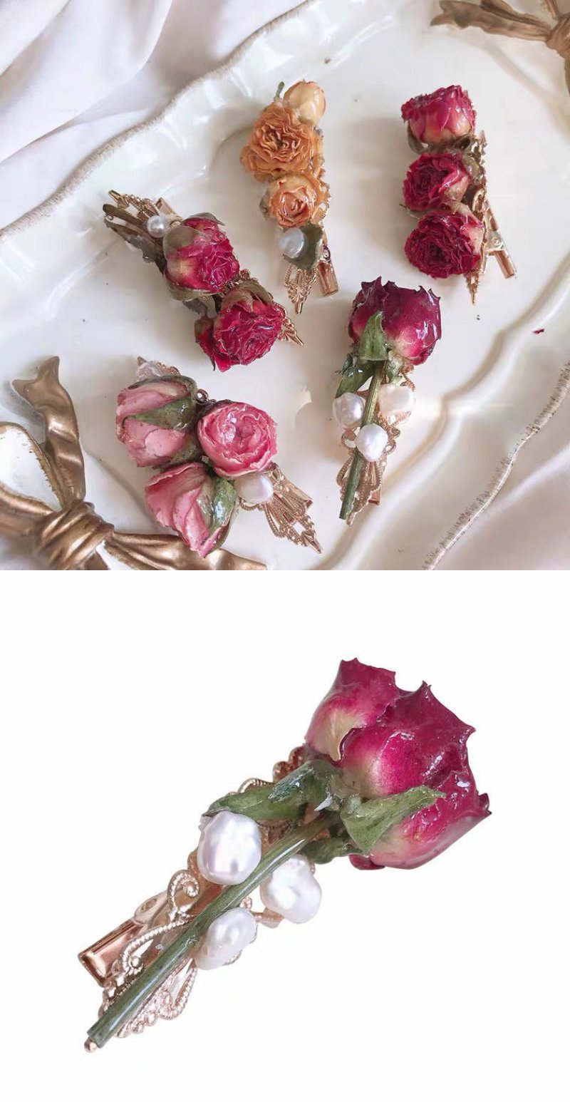 蔷薇少女 原创小众设计天然复古真花蔷薇发夹鸭嘴夹真花度假边夹