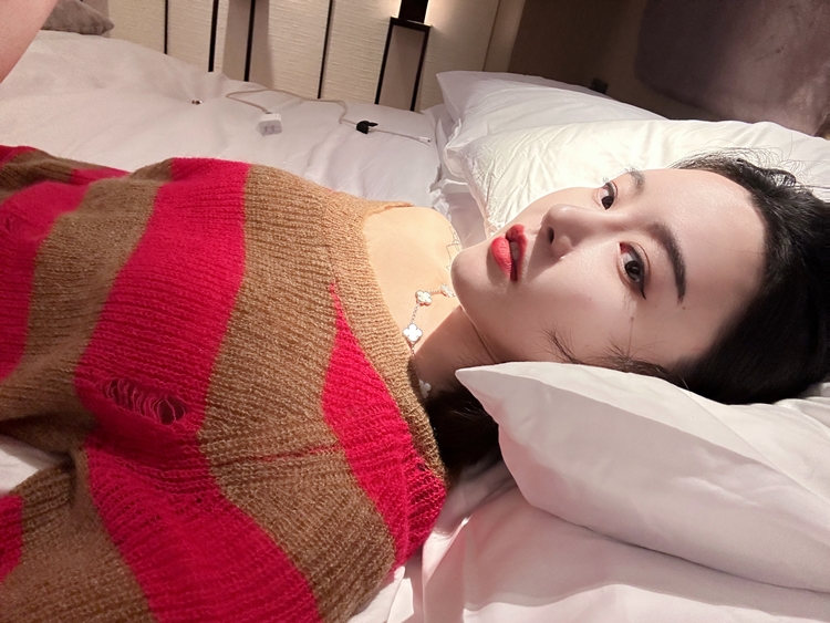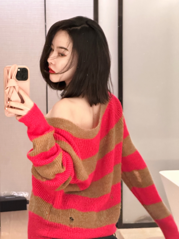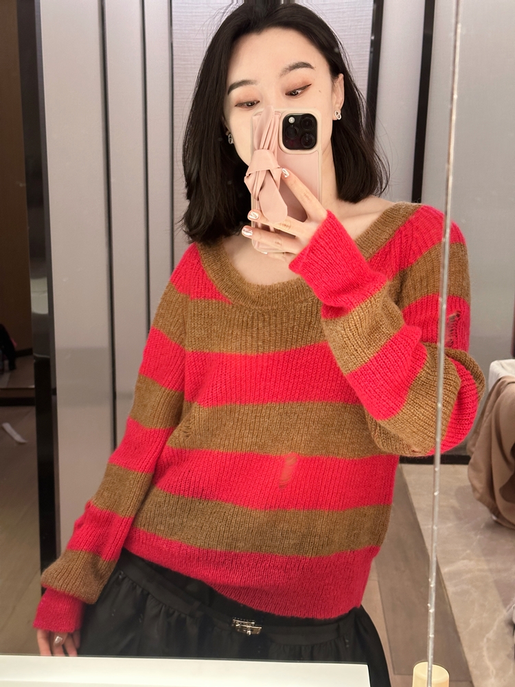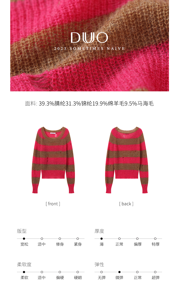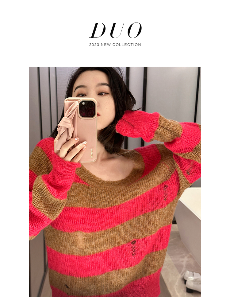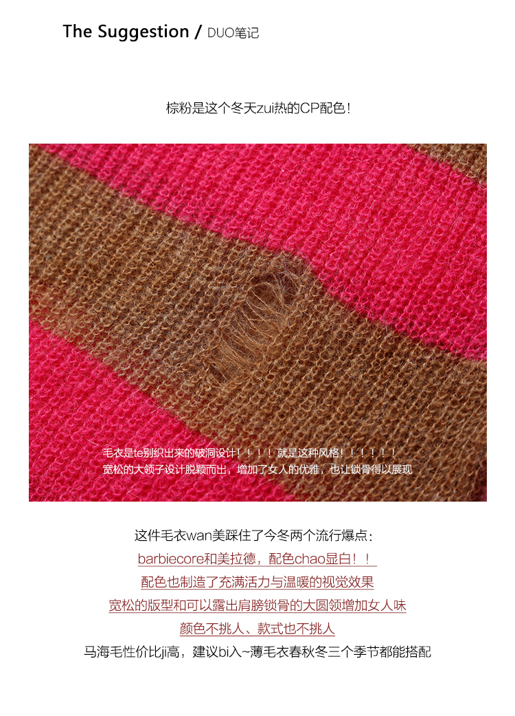 DUO 芭比棕熊 Barbicore美拉德完美融合条纹宽松马海毛锁骨毛衣