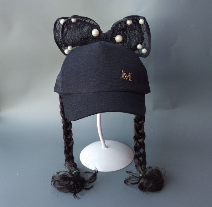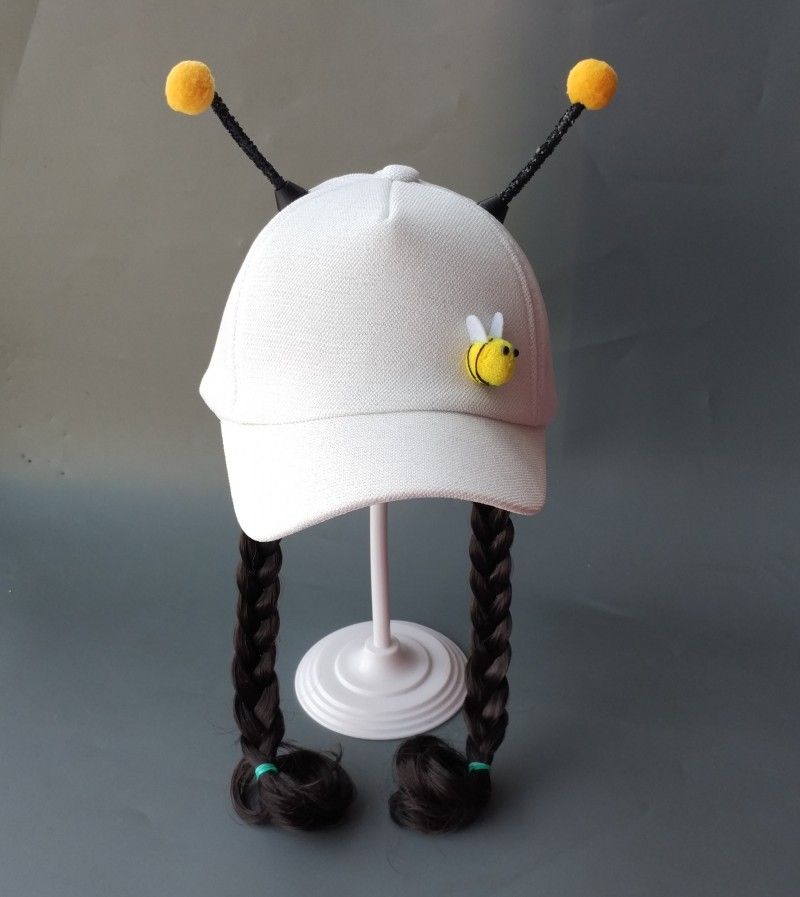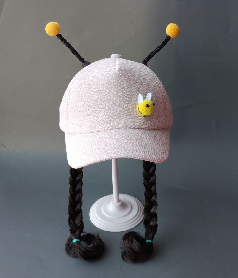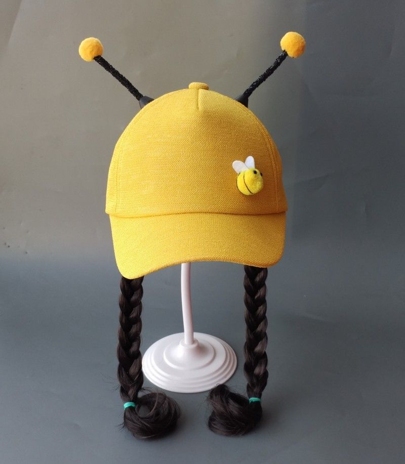 春夏季儿童鸭舌帽可爱蜜蜂帽子女童棒球宝宝遮阳帽子假发帽子夏天