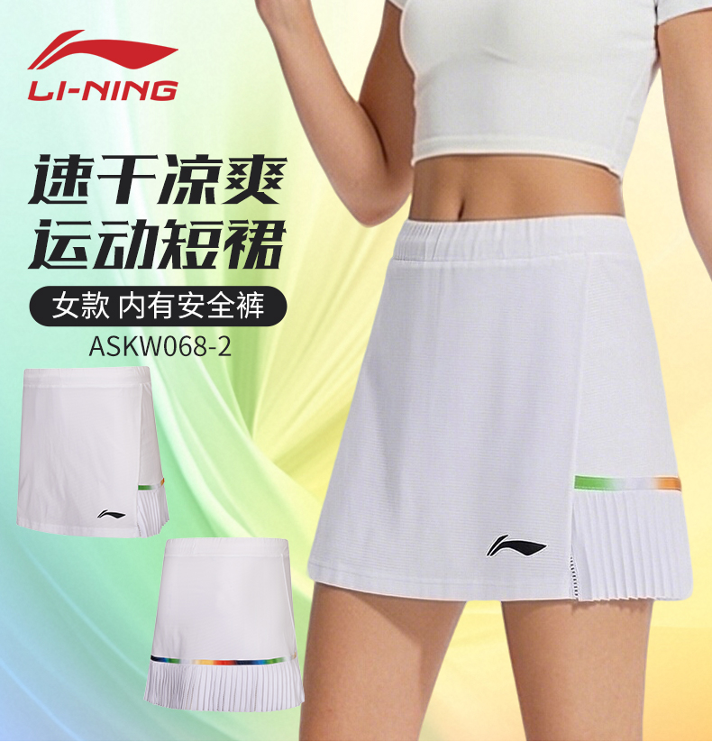 李宁羽毛球服速干凉爽比赛短裙ASKW068内有安全裤防走光运动短裙