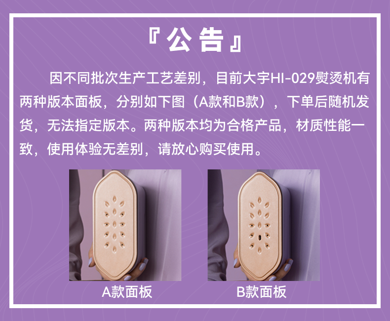 之前店里也上过几款小型挂烫机,因为不带增压功能,所以熨烫比较顽固的褶皱、厚重衣服时会有点累,但是大宇这款,别看它小小一个,却用到了双核加热微增压脉冲技,还获得了国家专利。面板可以单独进行二次发热:第一次雾化加热,第二次背面再次汽化,水进入发热体后,经过二次加热雾化增压喷出,不仅保证了蒸汽原有温度,能够快速熨平衣物,而且熨烫完,立马就能穿。