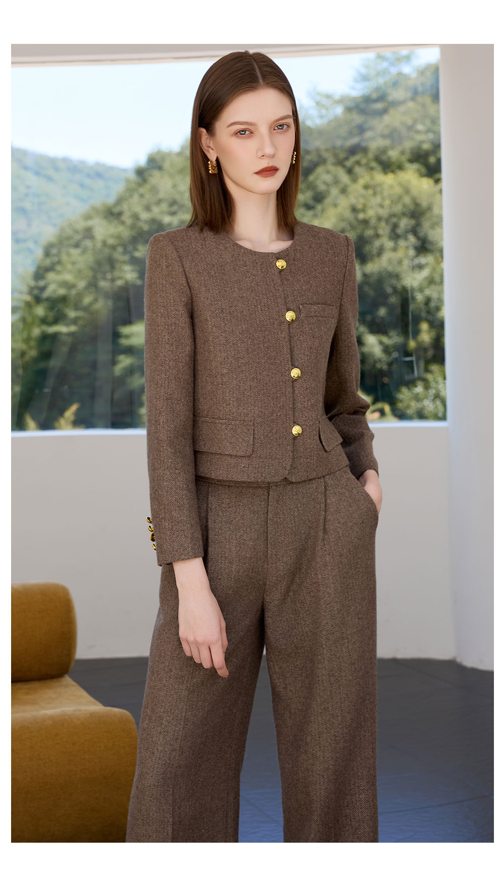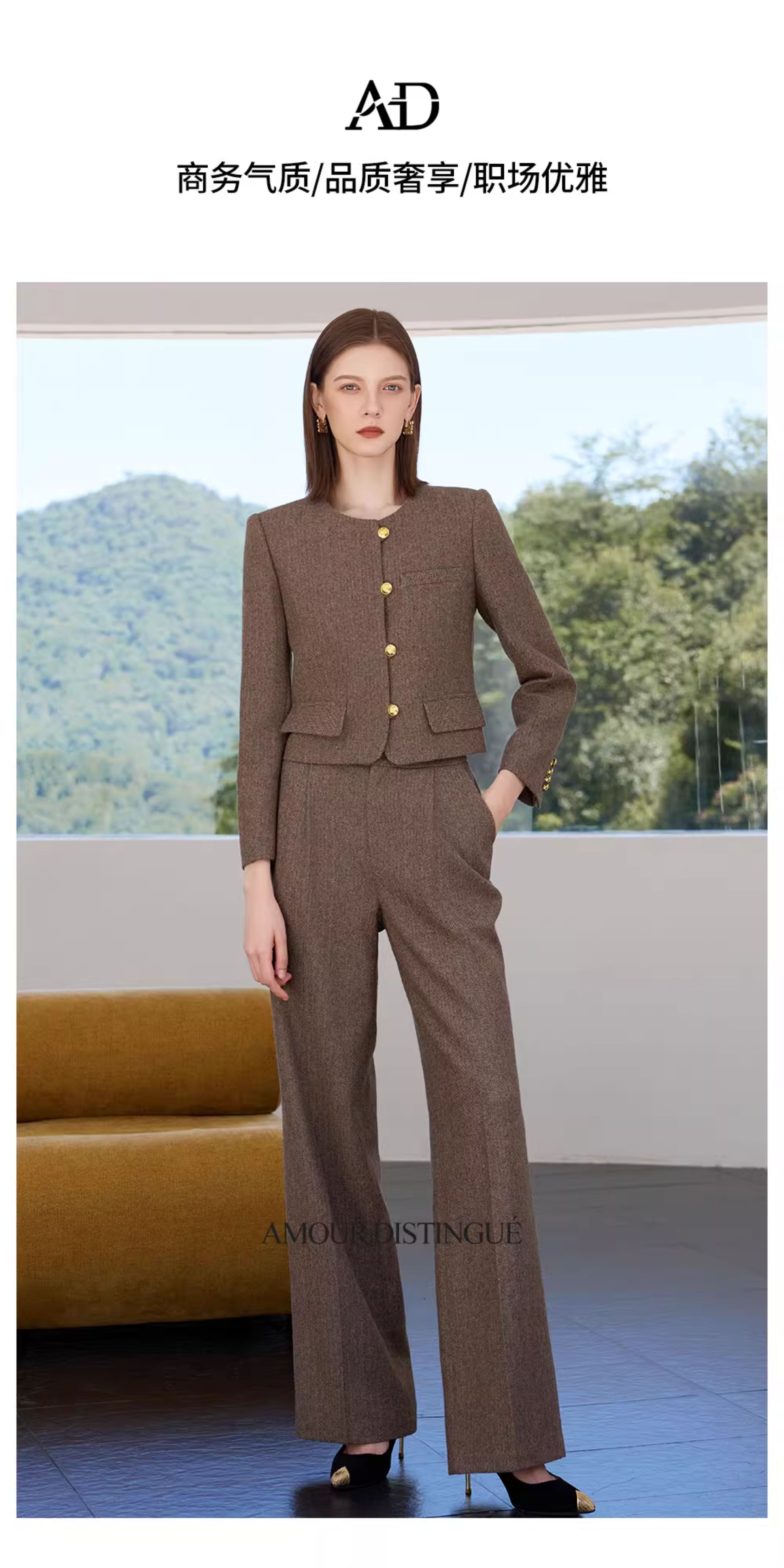 AD保暖加厚羊毛尼西装直筒裤两件套显瘦显高职场通勤职业正装女