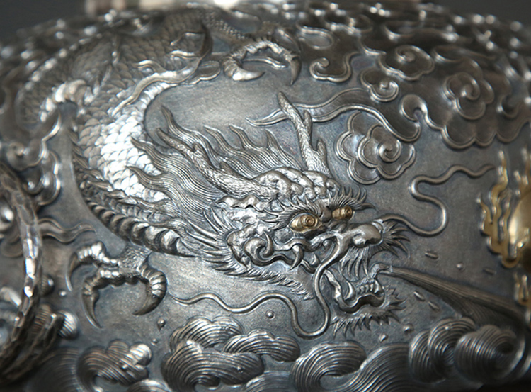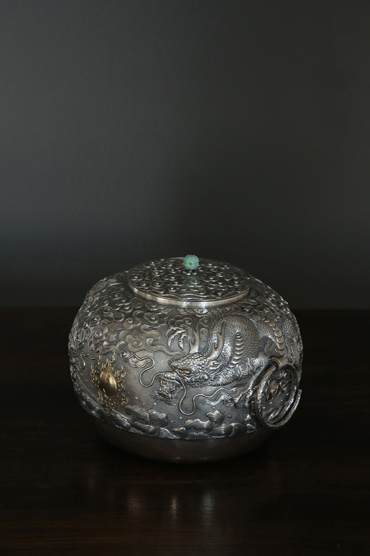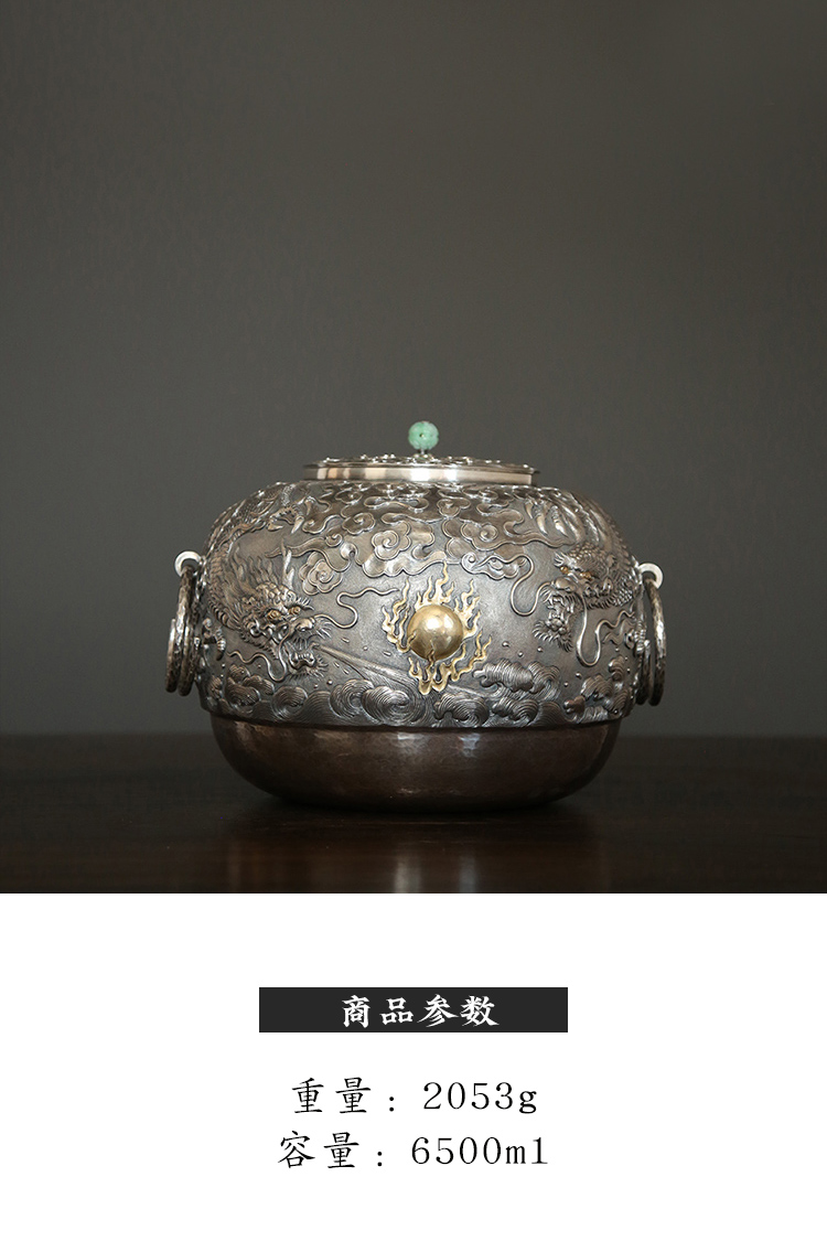 问鼎银壶双龙戏珠水缸(银色)(缺货)