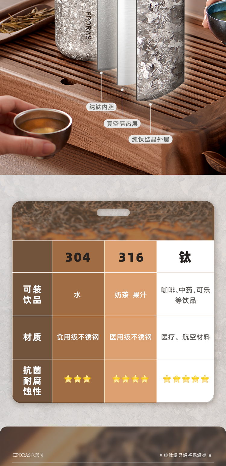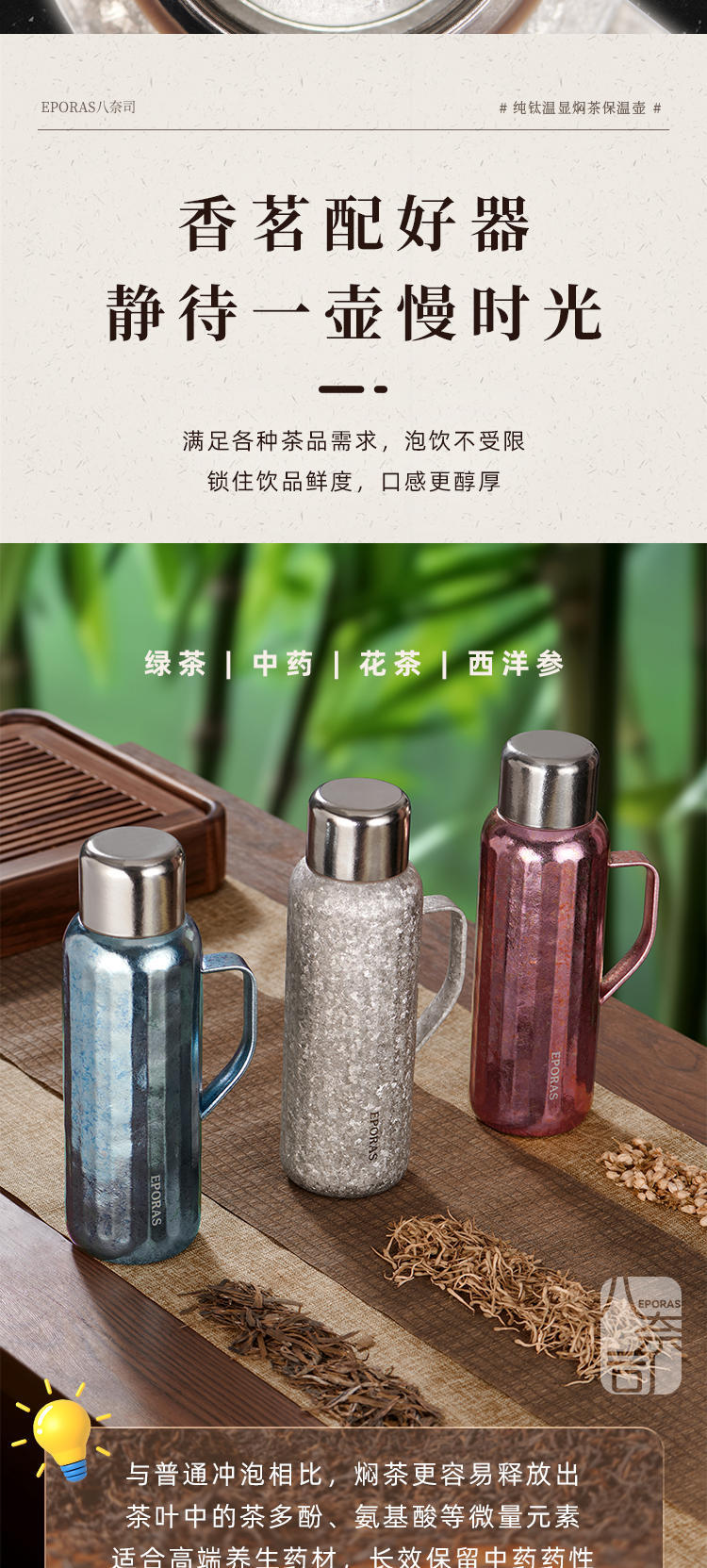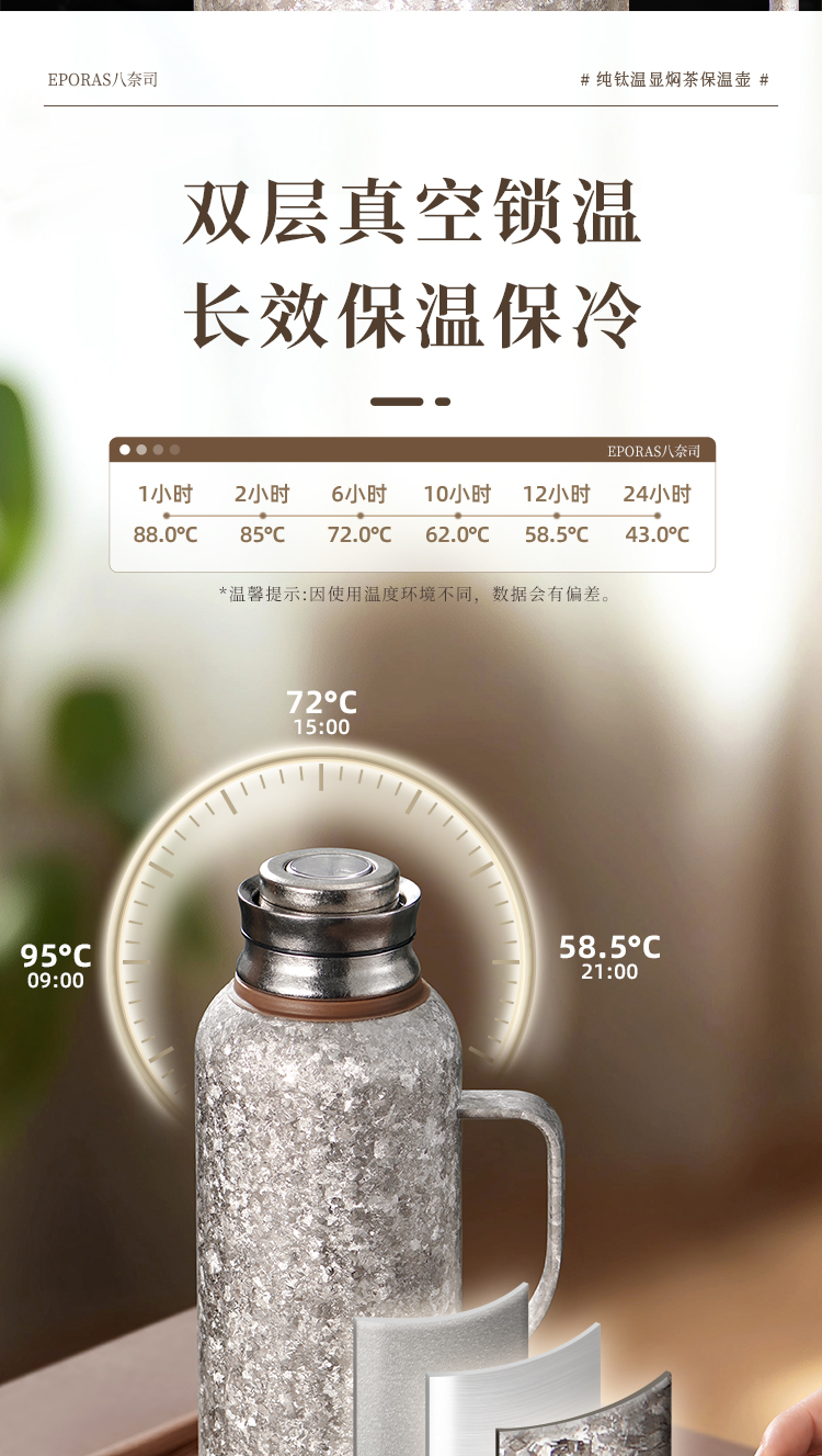 日本 EPORAS 八奈司 纯钛温度显示 焖茶壶 800ml 新品上新