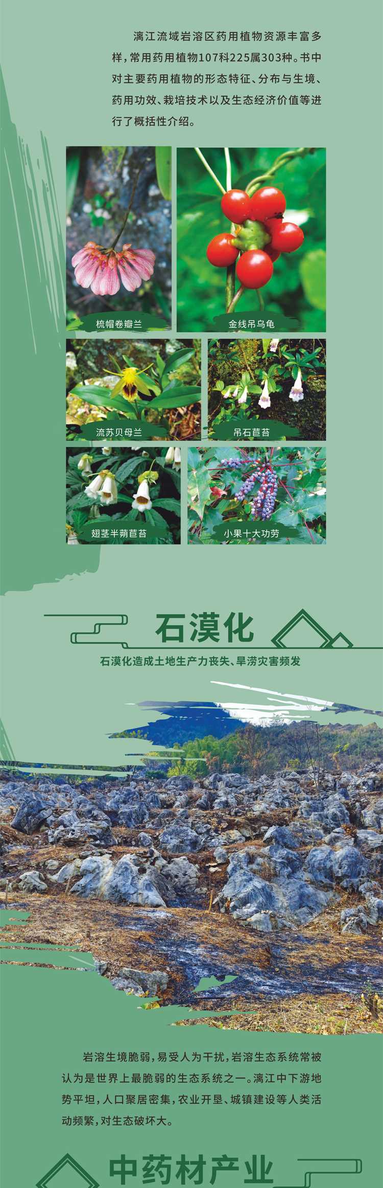 本书可为桂北和桂西北岩溶区特色农业发展、石漠化区生态修复、特色植物资源的保护与持续利用等提供借鉴,并可用于指导中药材种植领域的实际操作 ;可供植物学、林学、农学、生态学、中药学等相关领域的科技人员、行政人员、学生以及中药材种植者参考。本书涉及的植物种类、图片和文献资料较多,鉴于编著者水平所限,书中疏漏之处在所难免,敬请读者批评指正。