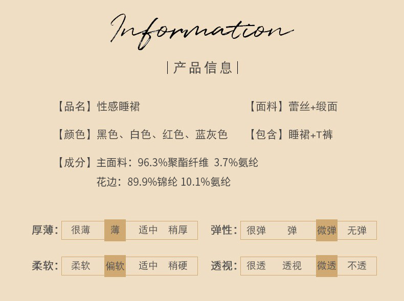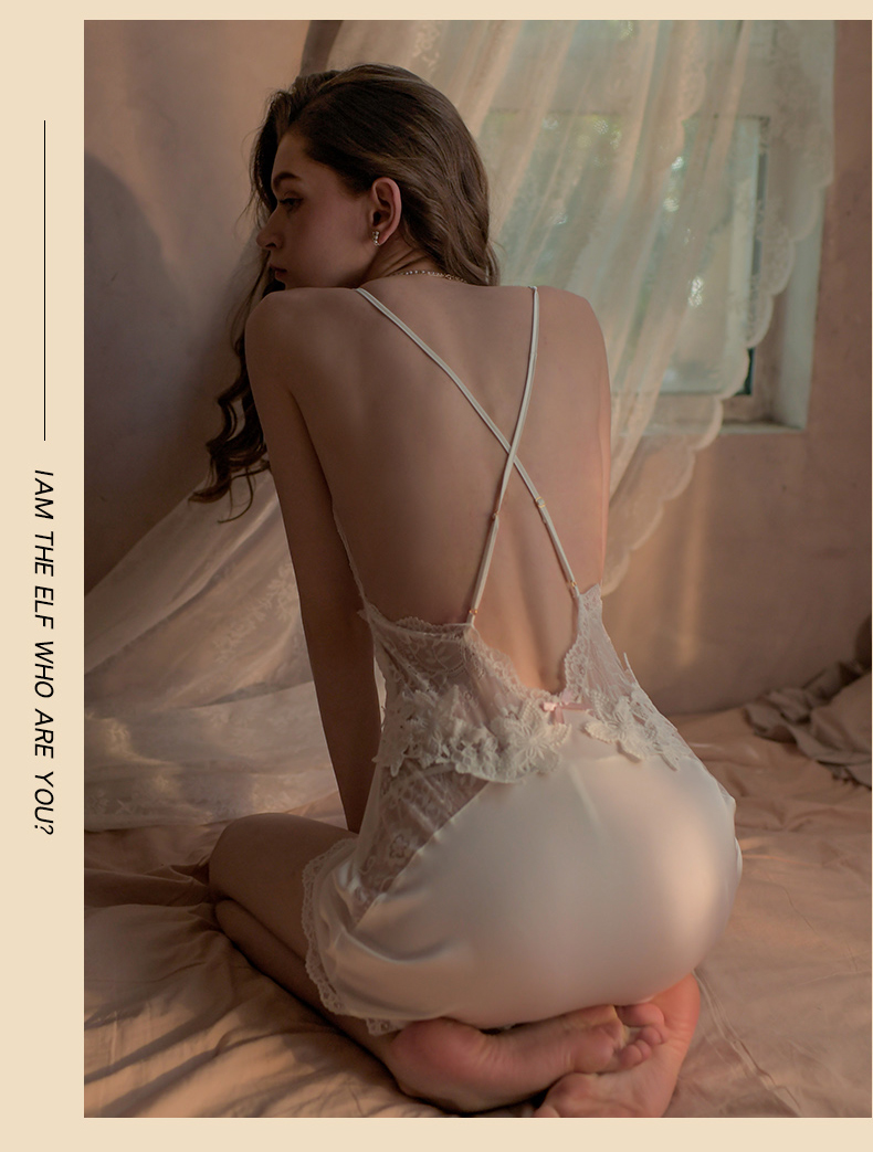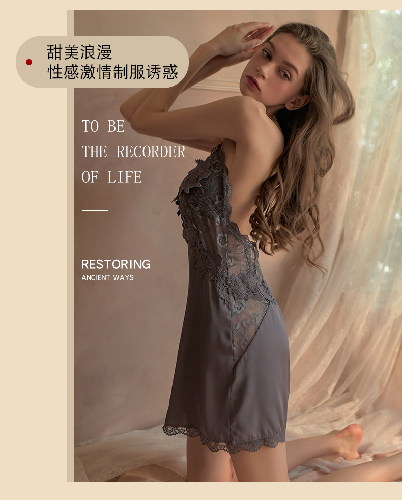 【性感睡裙】蕾丝缎面轻奢浪漫深v露背睡裙 纯欲诱惑性感甜美情趣内衣睡衣6035