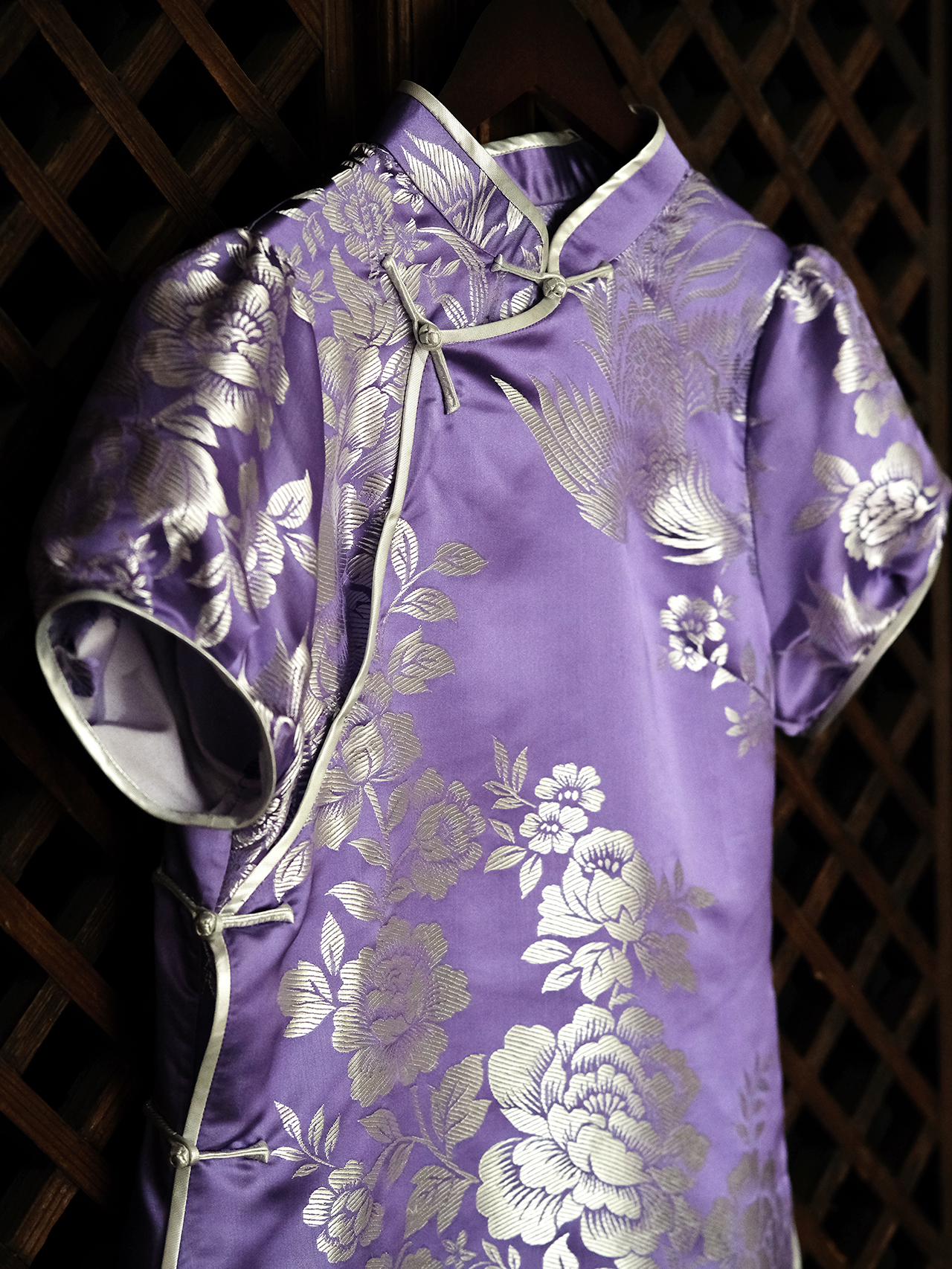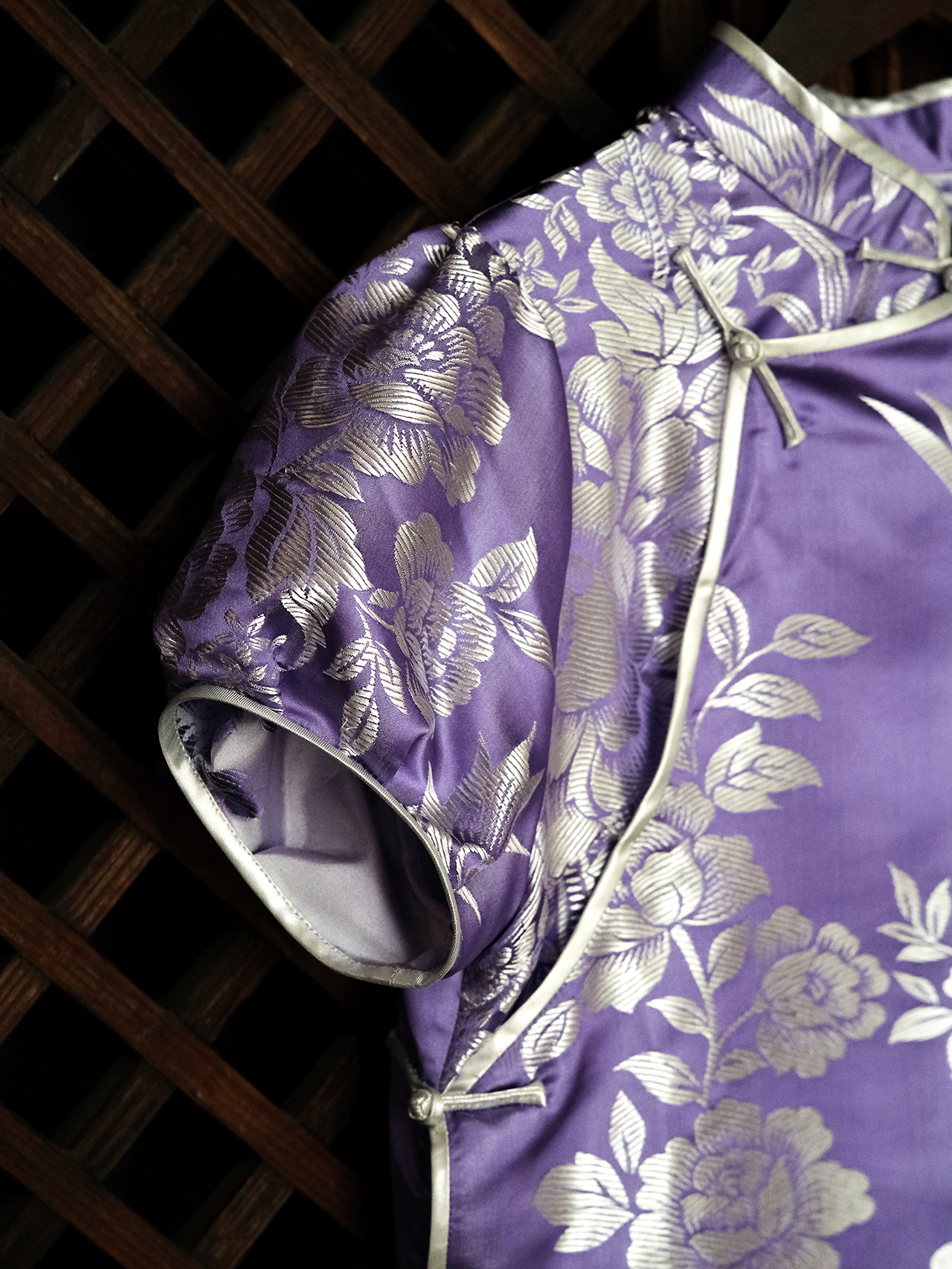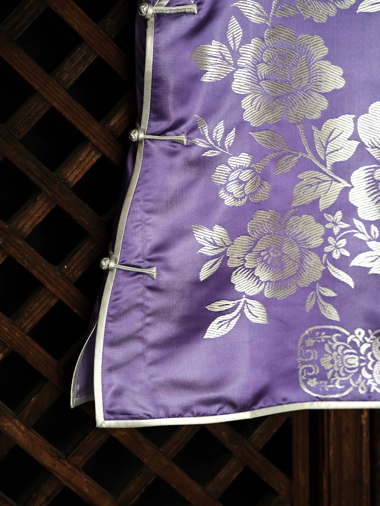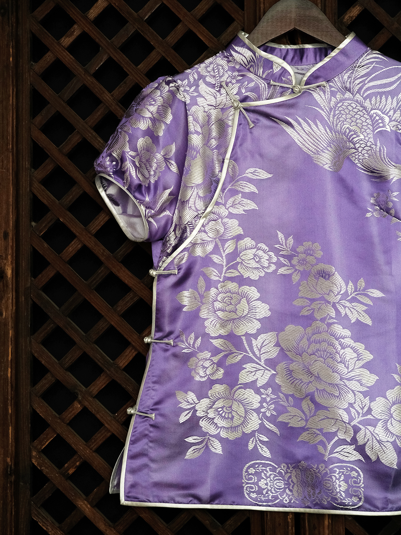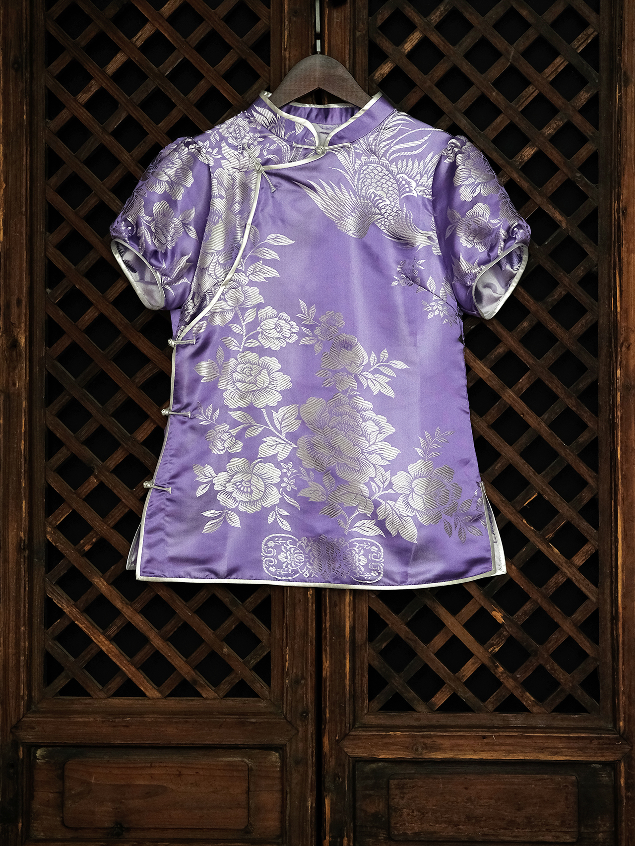 盛唐婧| 新中式老缎圆领斜襟七分袖上衣-紫色