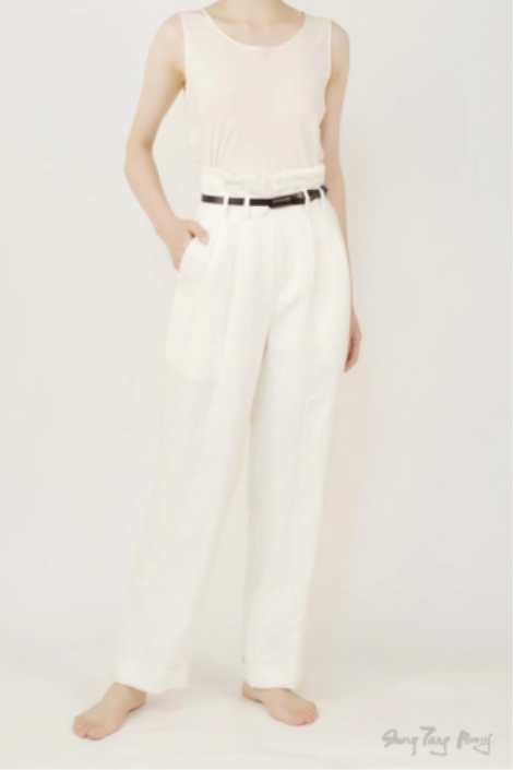 盛唐牡丹 | 意大利进口亚麻人字纹西装裤
