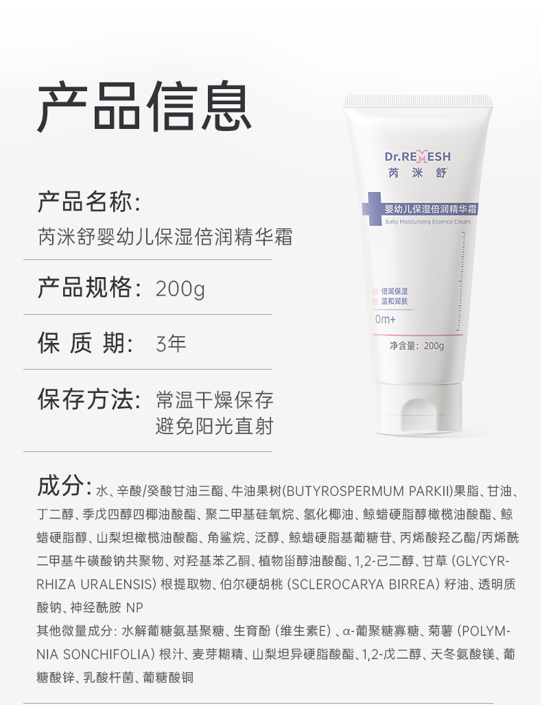 婴幼儿面霜 · DR.Remesh芮洣舒大白面霜200g 保湿倍润精华霜(孕婴级别)-24h长效保湿|品牌直发