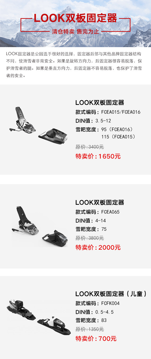 【五折特卖】LOOK猫跳PIVOT 14 B75双板滑雪专用固定器 含雪耙75 FCEA065