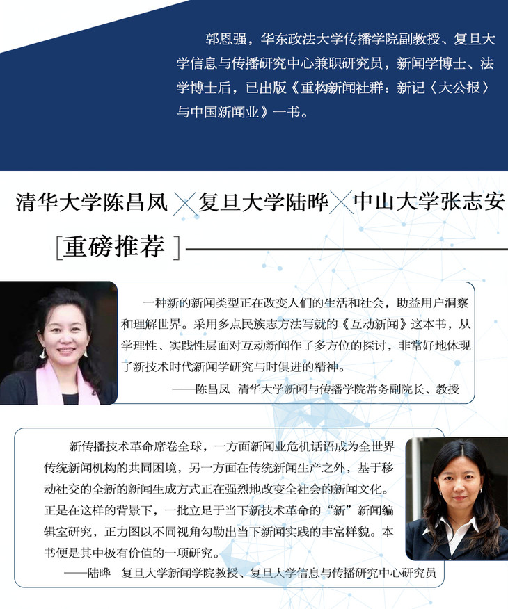 随着技术、文化和经济的变迁而兴起的互动新闻,是一种可以让用户和信息报道进行互动的叙事性视觉呈现。如今,互动新闻正处于一个连结点上:它既是传统新闻编辑室的组成部分,但又足够新颖,从而能为新闻行业贡献创新性的实践与思想。在《互动新闻:黑客、数据与代码》一书中,尼基•厄舍对互动新闻这一全新的新闻样式进行了全面的描述,探讨了数字技术对新闻报道及相关领域的影响。从半岛电视台英语频道的互动性创作,到英国《卫报》声誉*著的数据部门,再到《纽约时报》在此新领域向普利策奖发起冲击的努力,她的田野研究均有所涉及。《互动新闻》一书从全球14个不同的新闻编辑室搜集到的经验数据表明,新类型的记者——他们使用代码进行工作,使用计算手段来处理数据,远离文本叙事的日常建构,用一种新型的结构来帮助用户更好地理解社会,也帮助新闻业向更宽广的领域扩张,从而给新闻业的未来注入新的希望,或可扭转传统新闻业的下行与衰落。