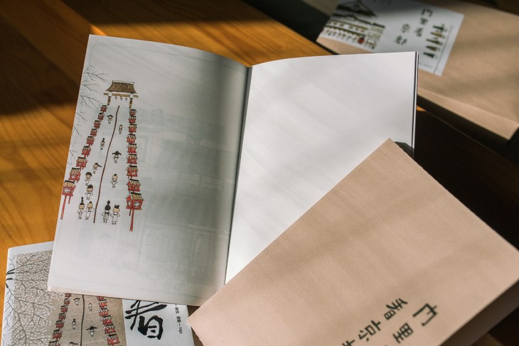 礼盒中包括 :《门里看京都》、手账两本、西阵织书衣