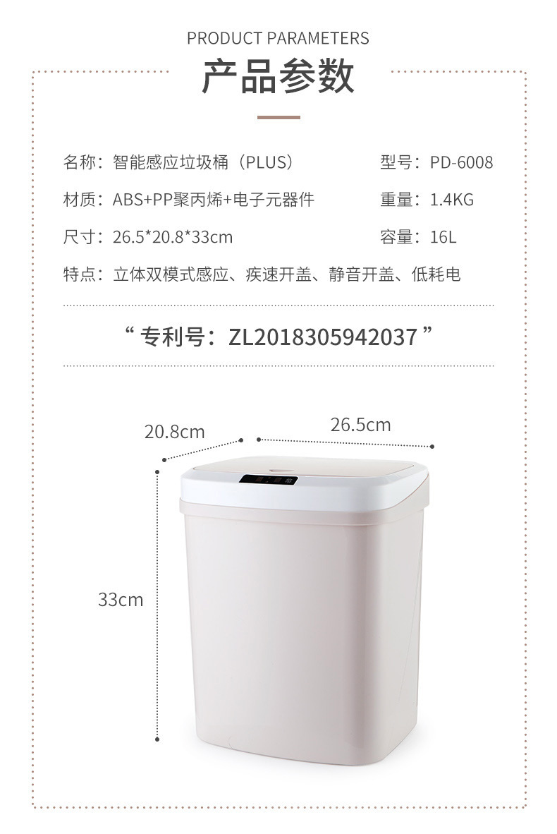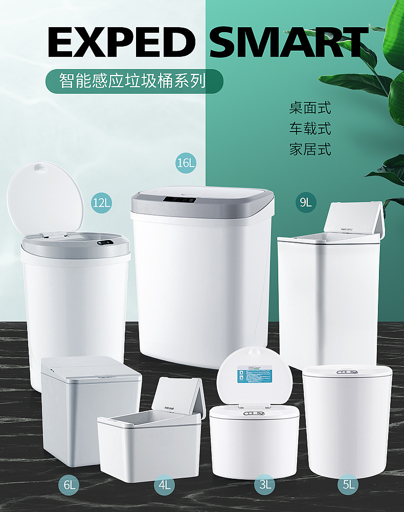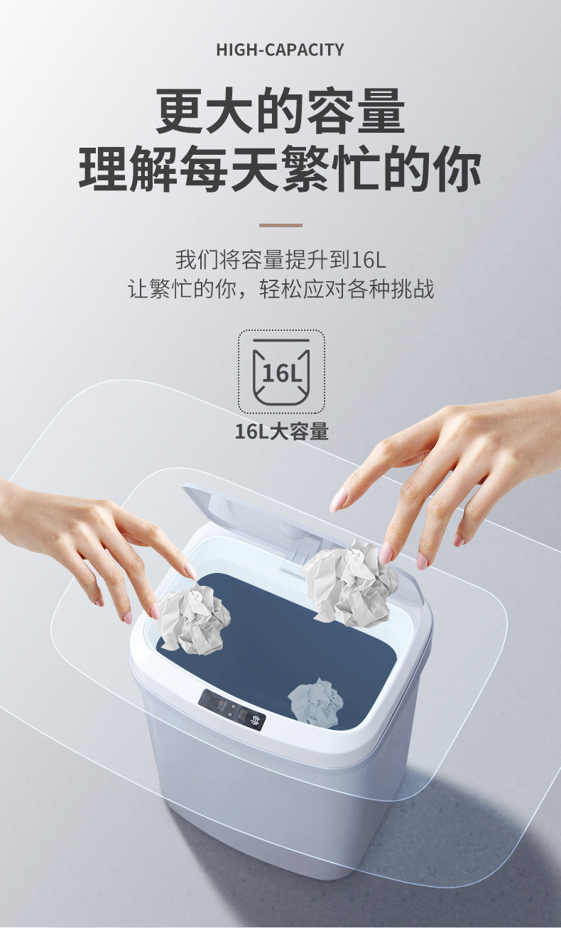 16L家用智能感应垃圾桶厨房客厅卧室卫生间自动电动踢碰踢碰桶