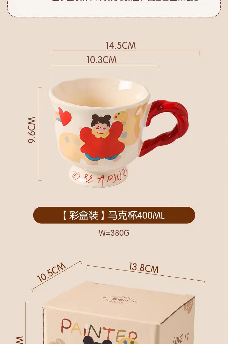 4楼Eubelle欧蓓 川岛屋马克杯女生陶瓷杯400ml 办公室咖啡杯早餐杯 活动价:29.9元