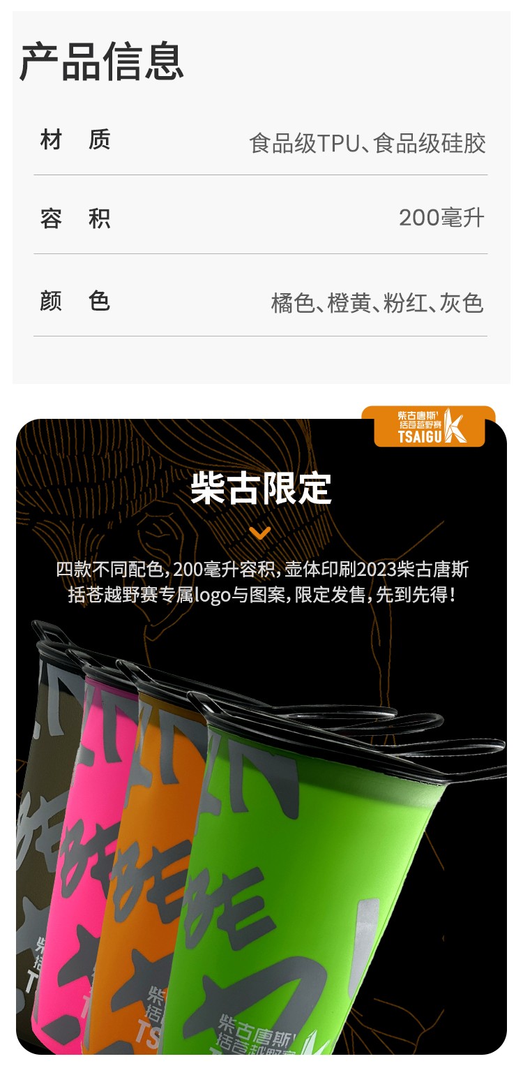 柴古唐斯官方限定软水杯男女通用户外跑步运动越野跑便携补水