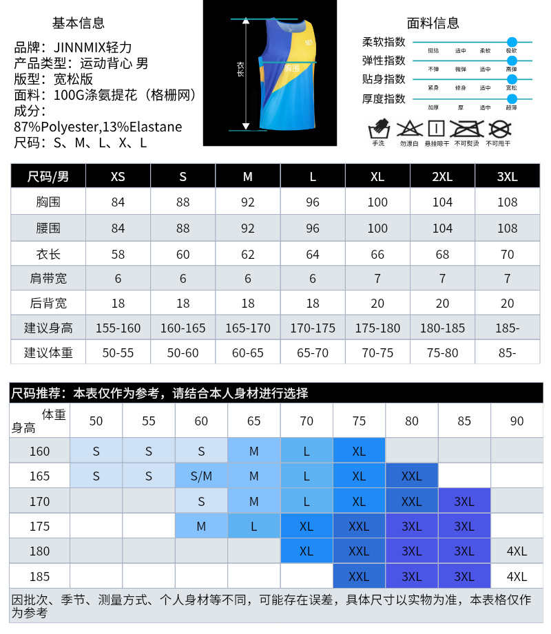以最新格栅网格面料,每平米仅重100G的原纱吸排抗异味超轻透立体网格面料织造,添加高比例氨纶,四面弹,久穿不变形;每平方厘米无数透气微孔,秒速透气速干;无痕贴胶工艺,不变形更贴服,超轻零感每件仅重34G。实惠价格,轻松穿上。高级面料无需高价购买,品质TOP,价格腰部。