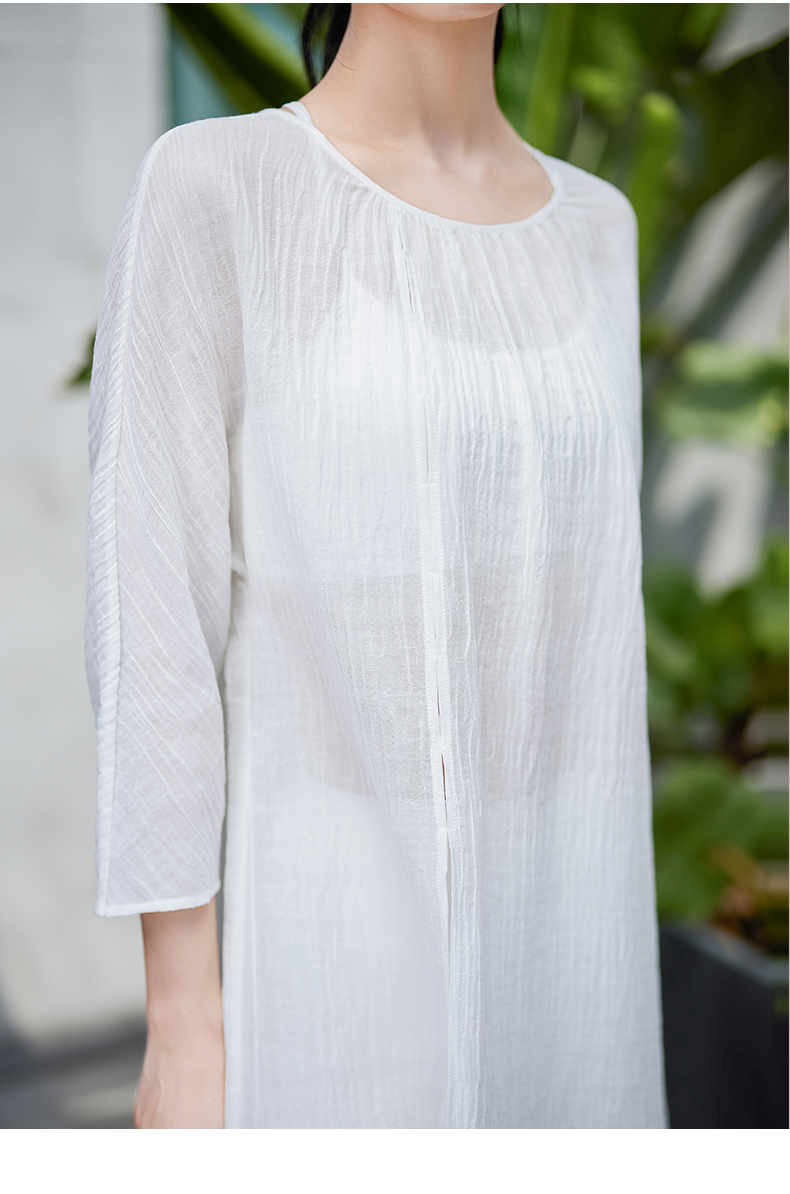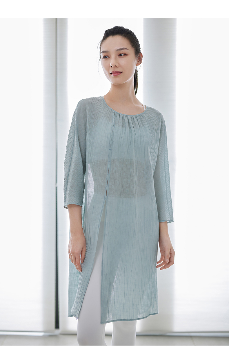 FM11321凡圣瑜伽棉麻连衣裙女夏新品中长款收腰宽松禅修美裙(不含胸垫)