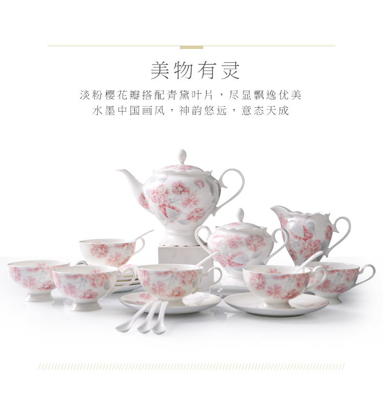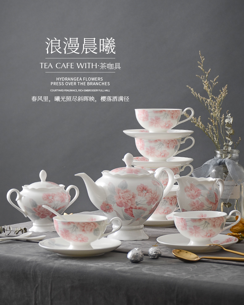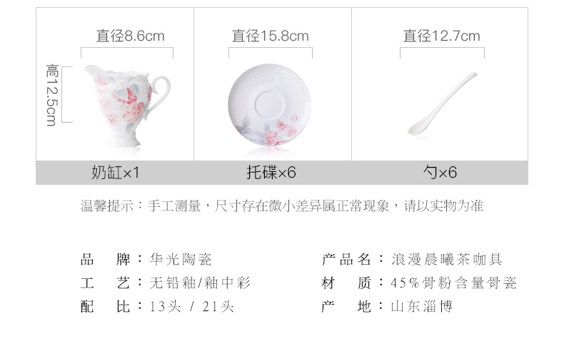 【浪漫晨曦咖啡具】华光陶瓷浪漫晨曦21件套咖啡杯套装骨瓷英式欧式美洲咖啡具锦盒礼品