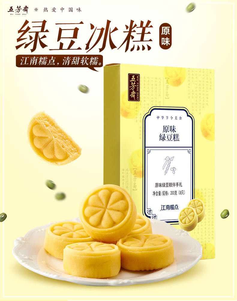 [换购] 五芳斋 原味绿豆糕伴手礼25g*8枚/1盒