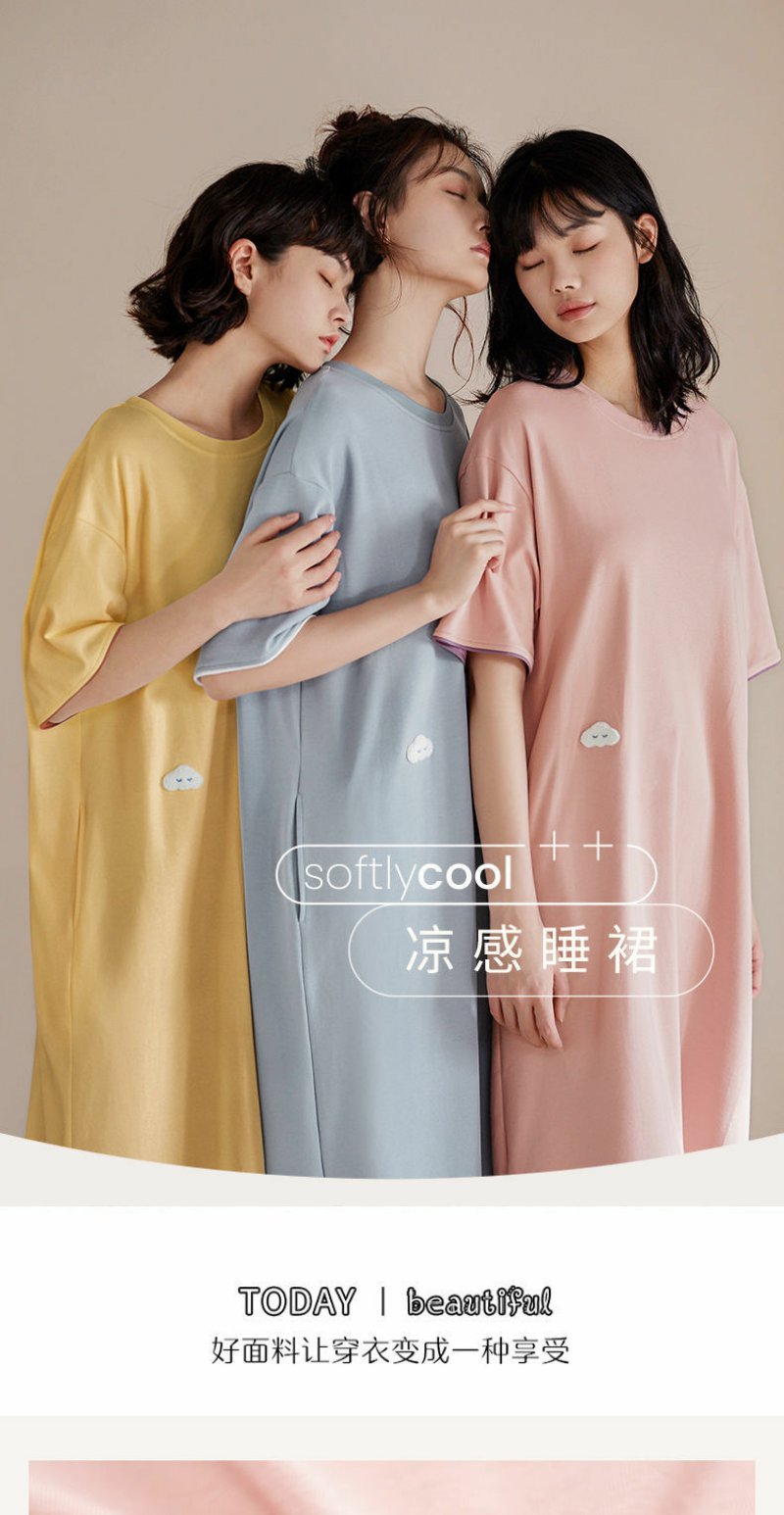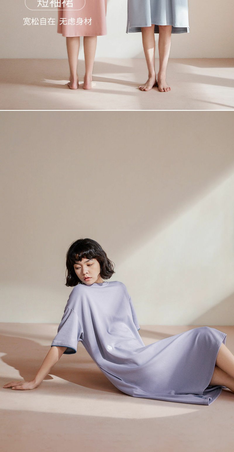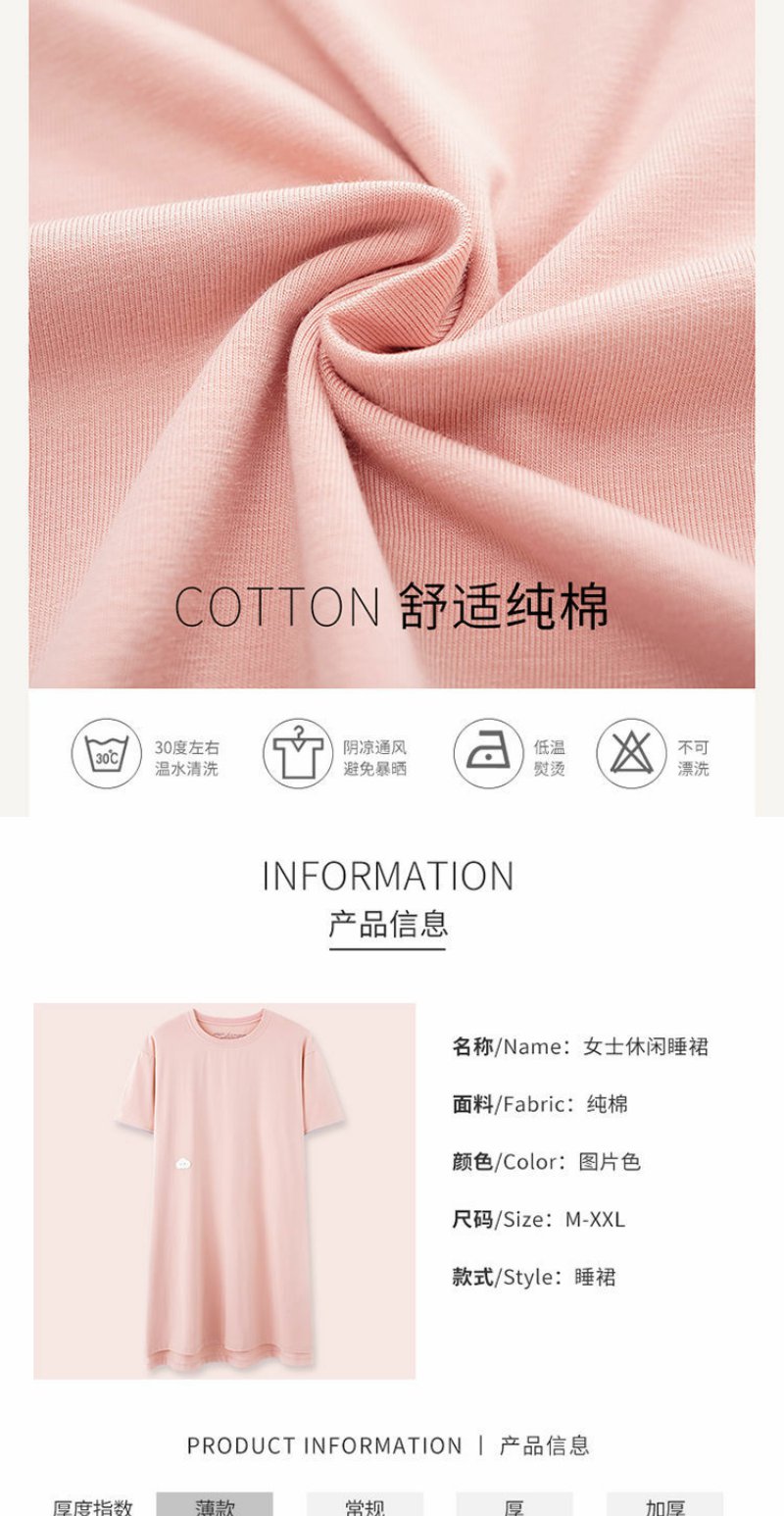 清新简约白月光 睡裙女夏季棉短袖中长款薄款家居服睡衣裙