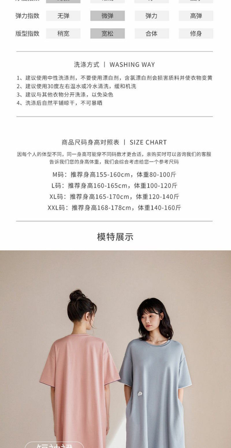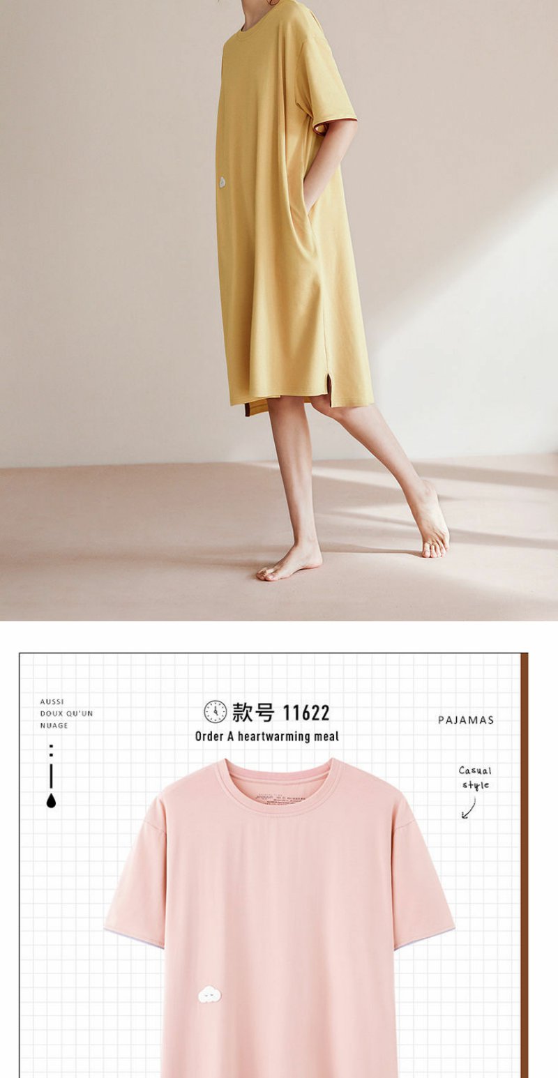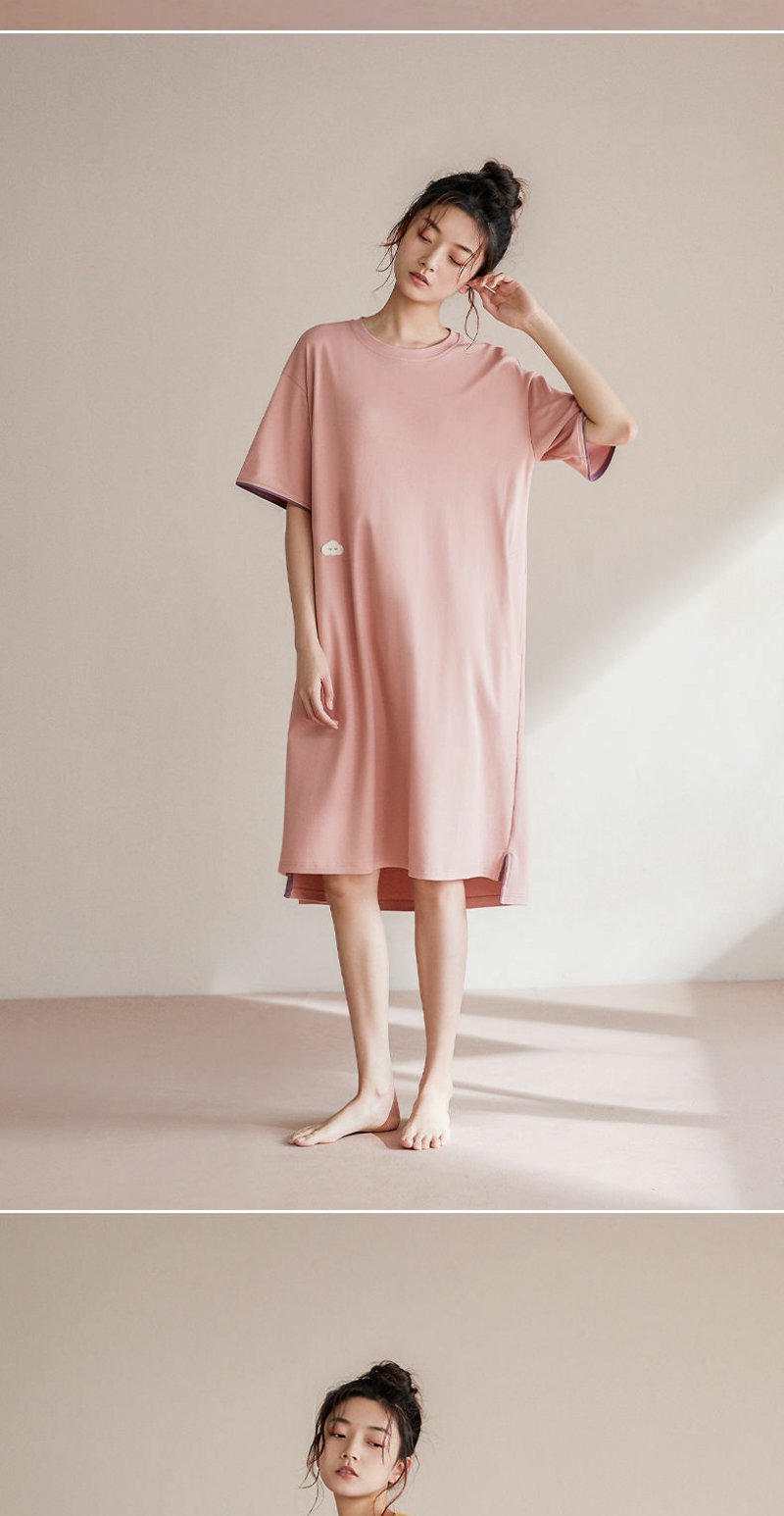 清新简约白月光 睡裙女夏季棉短袖中长款薄款家居服睡衣裙